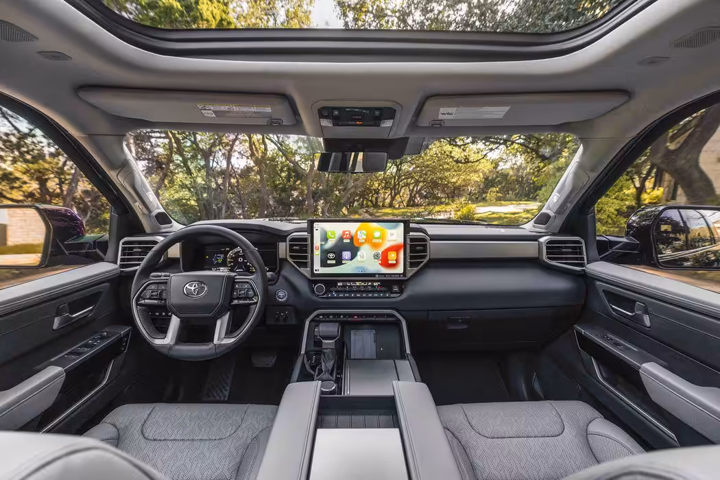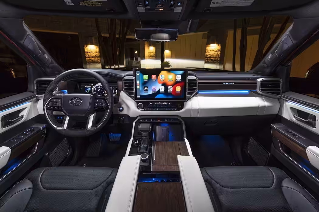Interiér bude štandardne osadený troma radami sedadiel. Podľa typu výbavy sa bude ich rozloženie meniť. Sedadlá v tretej rade budete môcť posúvať v rozsahu 15,2 cm a sklápať ich. Výbav bude celkovo päť – SR5,Limited, Platinum, TRD Pro a Capstone. Každá z nich má v štandarde bezpečnostný paket Toyota Safety Sense 2,5 s vyhrievanými sedadlami, strešným oknom, 12,“ digitálnym prístrojovým štítom a 360° kamerovým systémom.