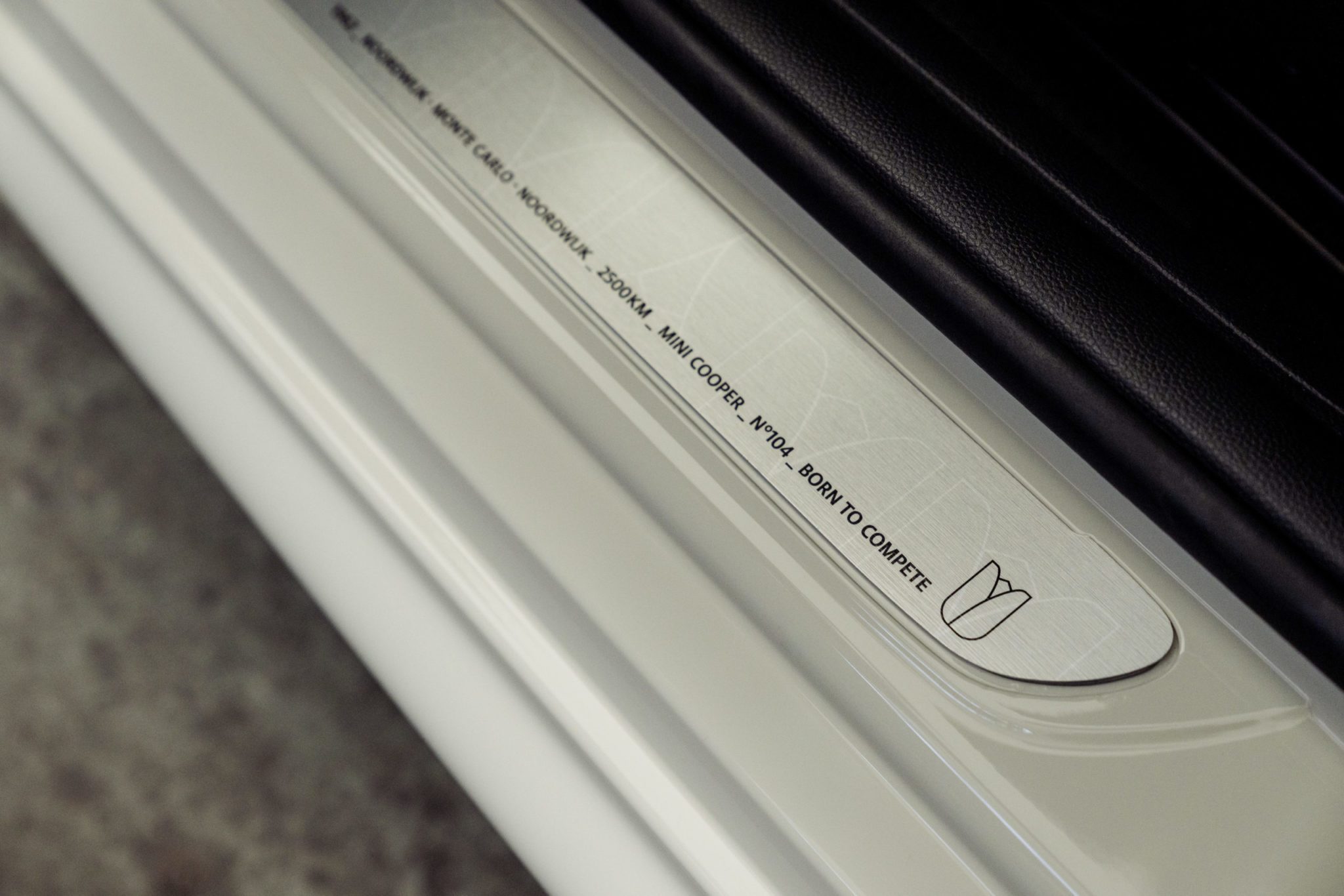 Štylizovaný tulipán s nápisom Patt Moss sa objavuje na C-stĺpikoch a bokoch a symbolizuje prvé víťazstvo v rely. Kryty nábojov kolies dostanú dizajn s grafikou, ktorá vychádza z obrysu typického holandského kvetu a nápisu MINI. Pod bočnými otvormi na predných blatníkoch sú zaznamenané kľúčové informácie o Tulip Rally z roku 1962: trasa Noordwijk – Monte Carlo – Noordwijk, vzdialenosť 2 500 kilometrov, vozidlo a jeho štartovné číslo 104. Dopĺňa to slogan, ktorý pre automobilku MINI platí dodnes: Zrodené pre preteky. Kombinácia trojrozmerných čísel a písmen 737 ABL je evidenčným číslom víťazného modelu. Predný nárazník zdobí pôvodný podpis, ktorý Pat Moss napísala na kapotu svojho vozidla po jednom z jej víťazstiev.