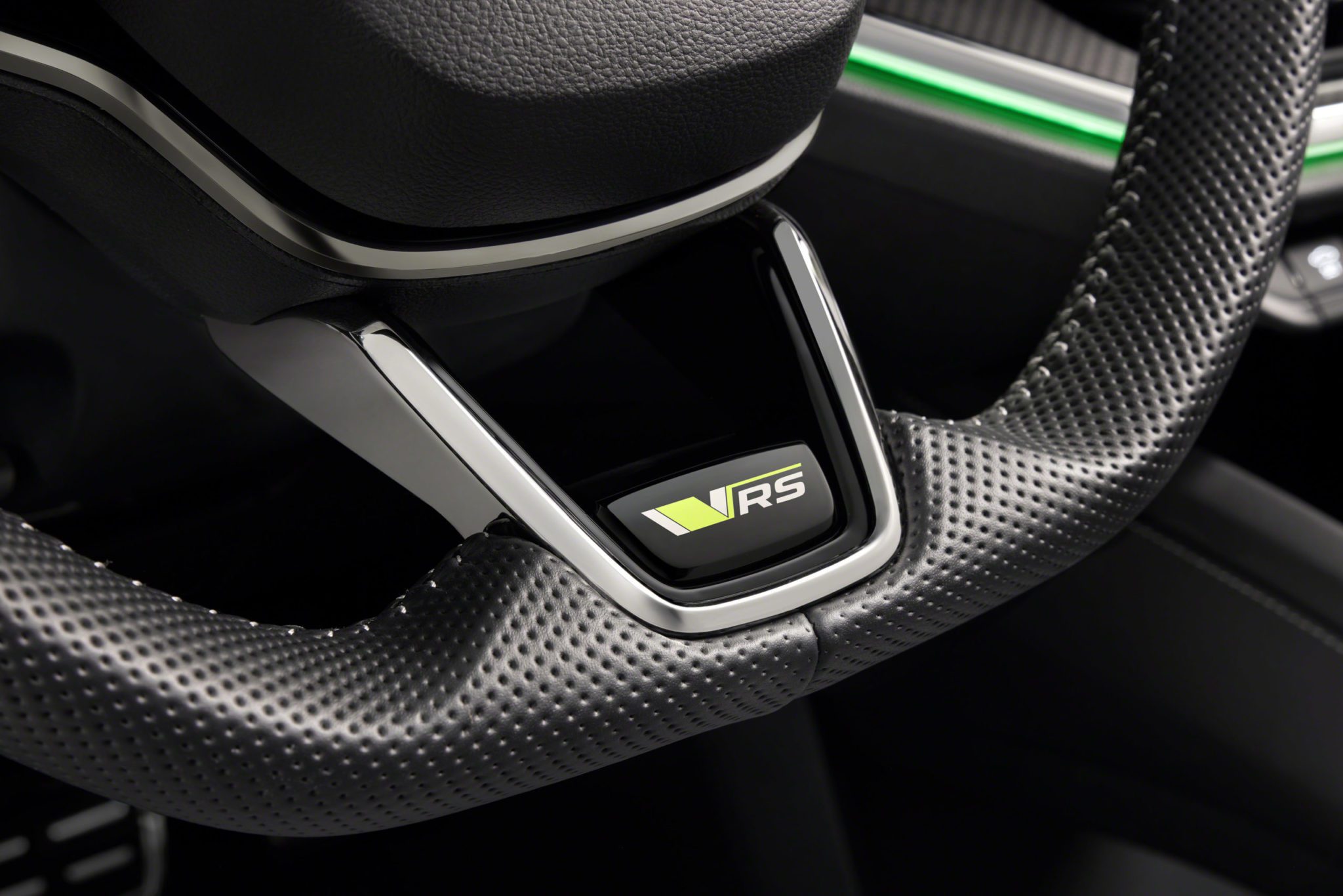 V štandardnej výbave bude mať napríklad osvetlenú masku chladiča Crystal Face so 131 LED diódami, čierne kontrastné prvky alebo čierne 20-palcové kolesá TAURUS (za 21-palcové kolesá VISION si Škoda pýta príplatok 756 eur). Základná výbava ďalej obsahuje interiér z kože a alcantary (celokožené sedadlá sú za príplatok 680 eur), trojramenný športový vyhrievaný volant, vyhrievané predné sedadlá, strešné okno, full LED Matrix svetlomety, virtuálny kokpit s 5,3“ displejom, 13“ displejom multimediálneho systému s navigáciou, trojzónovú klimatizáciu, zadnú parkovaciu kameru, audiosystém s 8 reproduktormi či adaptívny tempomat.