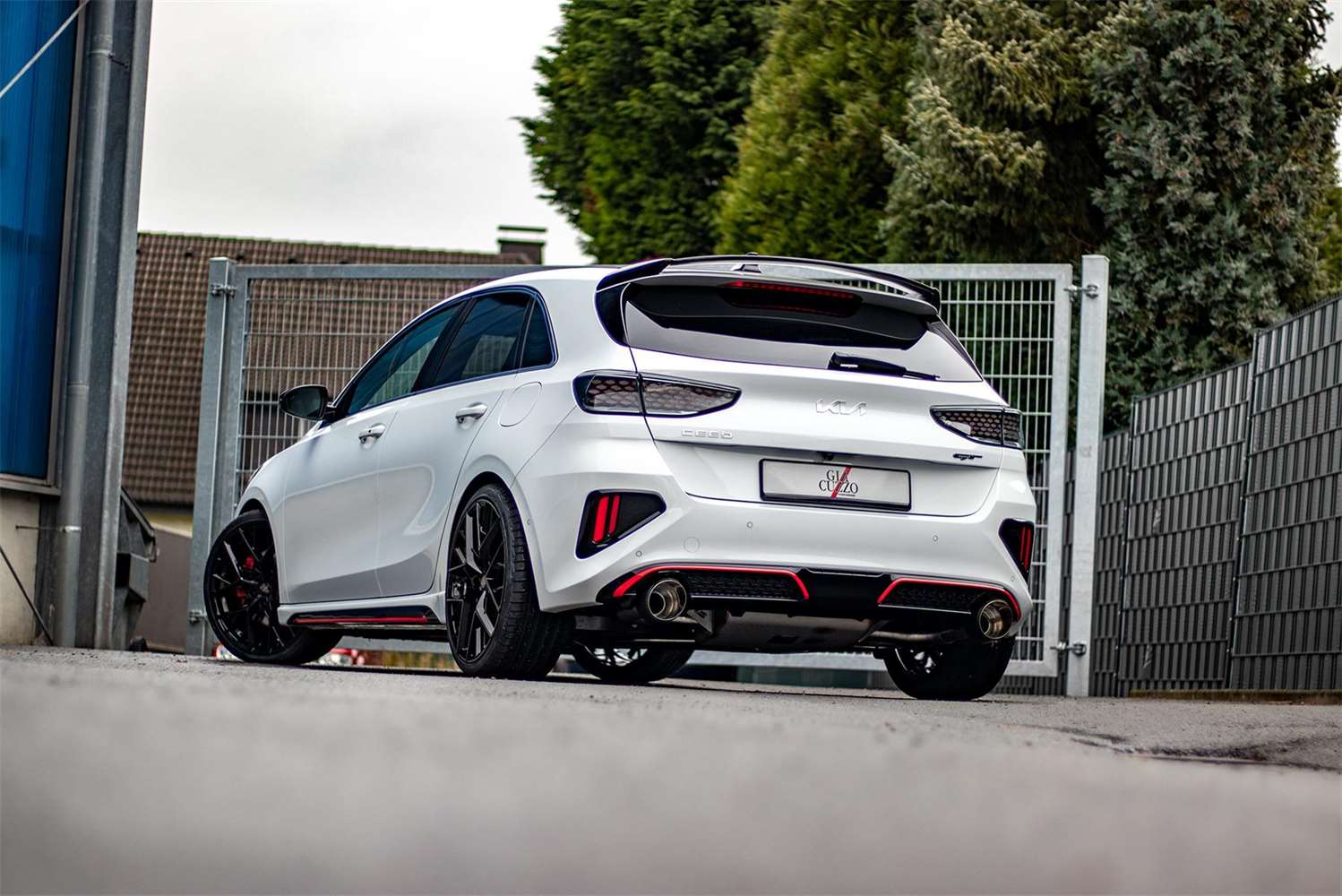 Azda najkrajší model, Kia ProCeed GT má v ponuke hneď niekoľko variant diskov kolies spolu s karosárskymi dielmi ako predný splitter, prahy, prípadne zadný difúzor. Ten naozaj stojí za zmienky a pokiaľ vám ten pôvodný nie je proti chuti, môžete zvoliť jeden z troch ponúkaných od 319 €. K dispozícií máte aj nový vzduchový filter, nastaviteľný podvozok, či hlučnejšie výfukové potrubie, ak nestačí to, od série.