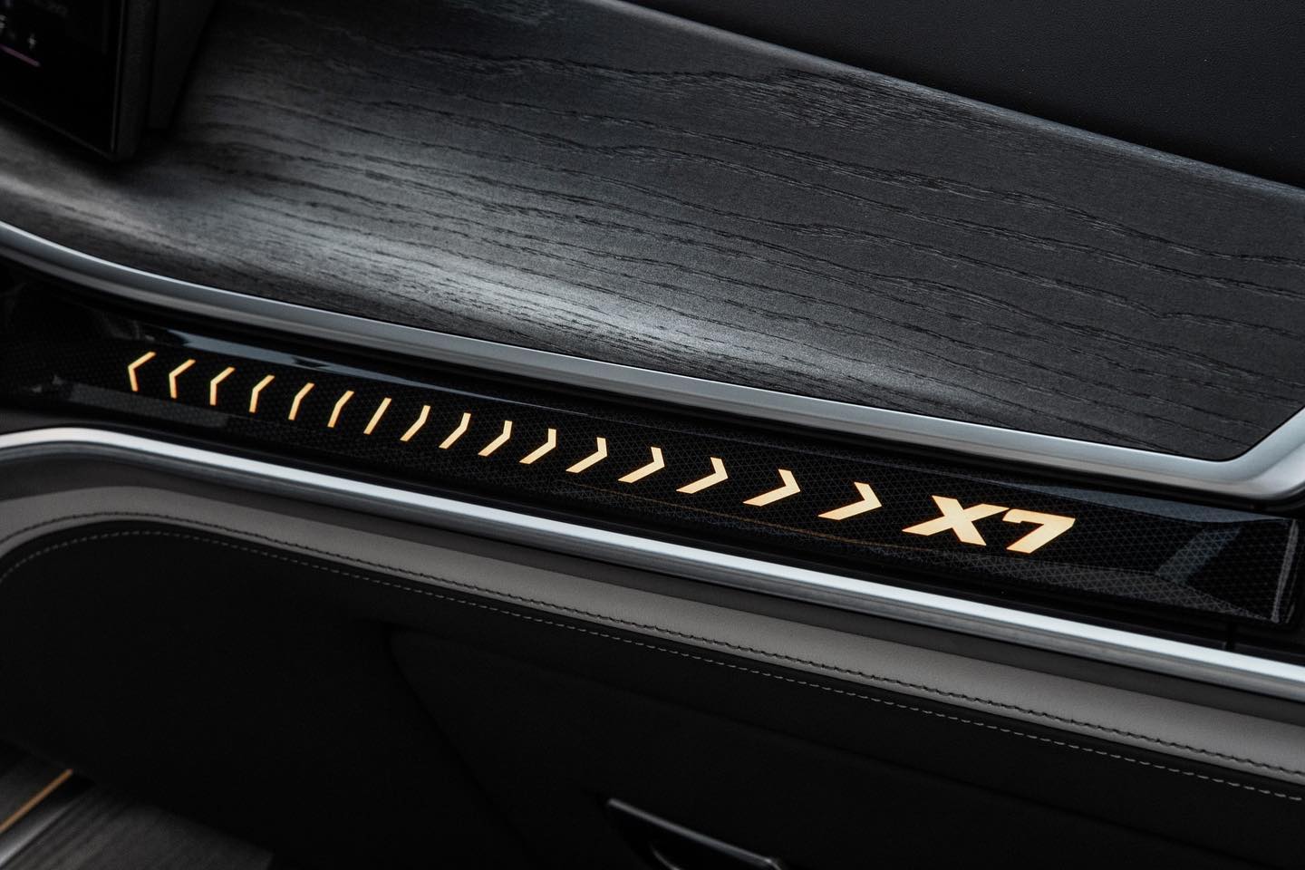 BMW X7 je považované za jedného z mála adeptov, ktoré dokáže pohodlne prepraviť až 7 cestujúcich. V interiéri spoznávame novo vytvorenú palubnú dosku s úzkymi otvormi ventilácie a náladovým osvetlením v spodnej časti. Novinkou je aj zakrivená obrazovka BMW Curved Display. Rôzne svetelné prvky dotvárajú v interiéri auru exkluzivity. Nový tvar teraz dostal aj volič automatickej prevodovky. Základná výbava je v tomto modeli početne rozšírená. Zameriava sa prevažne na zvyšovanie komfortu posádky. V základe dostanete automatickú 4-zónovú klimatizáciu, panoramatické strešné okno alebo komfortné predné sedadlá.