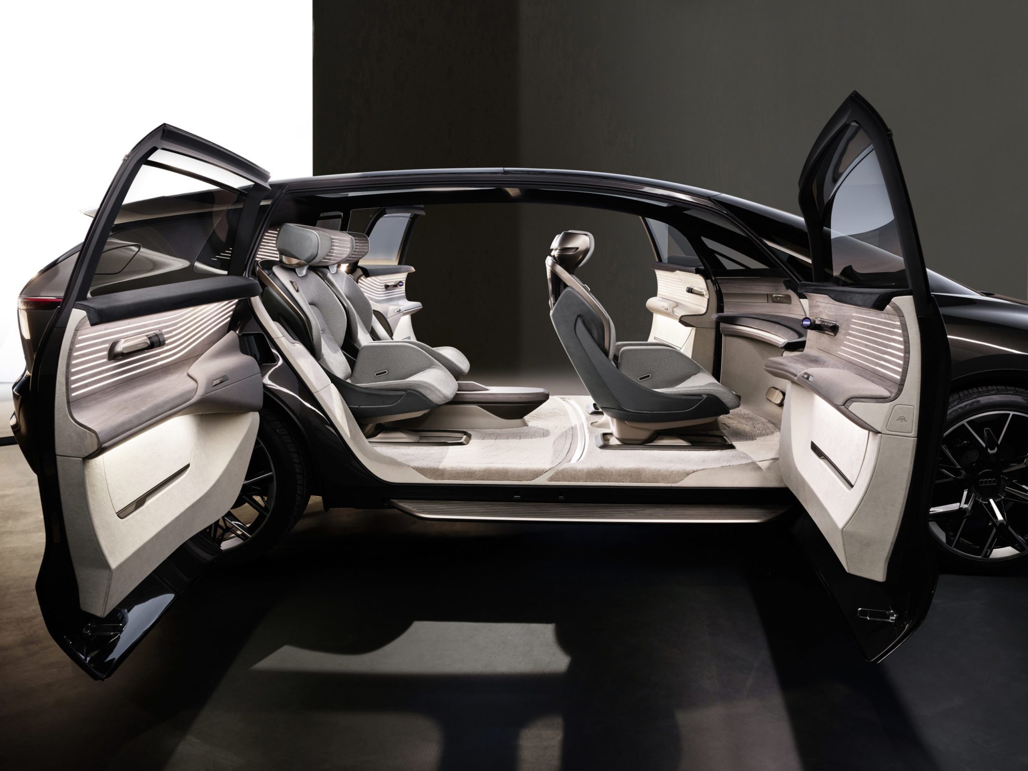 Dvere konceptu sa otvárajú proti sebe. Absentujúci B-stĺpik umožňuje absolútne pohodlné nastupovanie dovnútra, ktoré spríjemnia a otáčajúce sa sedadlá či červený koberec svetla premietaný na zem vedľa vozidla. Štyri samostatné sedadlá v dvoch radoch ponúkajú cestujúcim prvotriedny komfort. Operadlá zadných sedadiel je možno nakloniť o 60 stupňov, pričom sa súčasne vysunú opierky nôh. Stredové lakťové opierky sú integrované do bokov sedadiel a ich náprotivky vo dverách vytvárajú príjemný pocit pohodlia a pokoja.