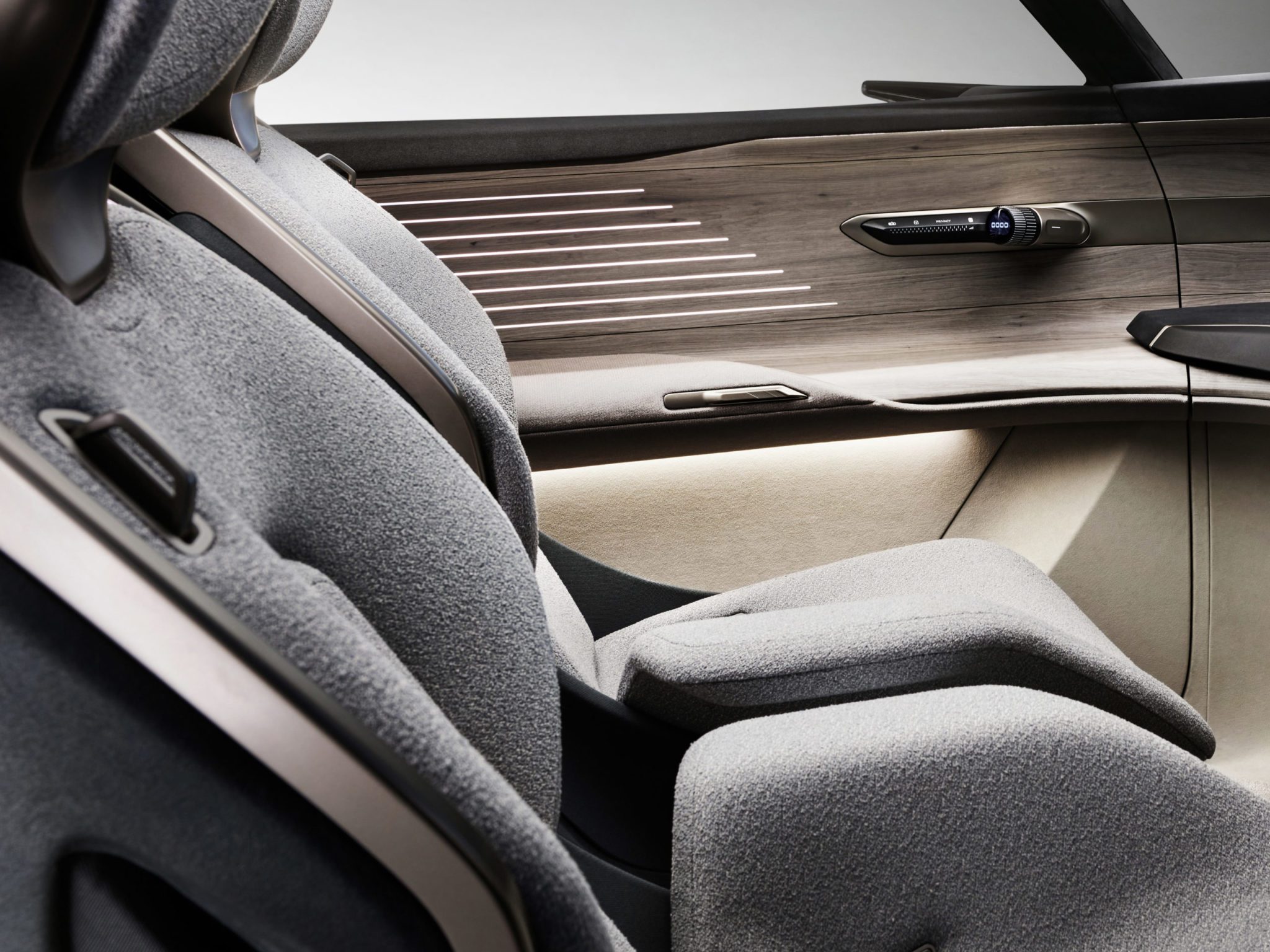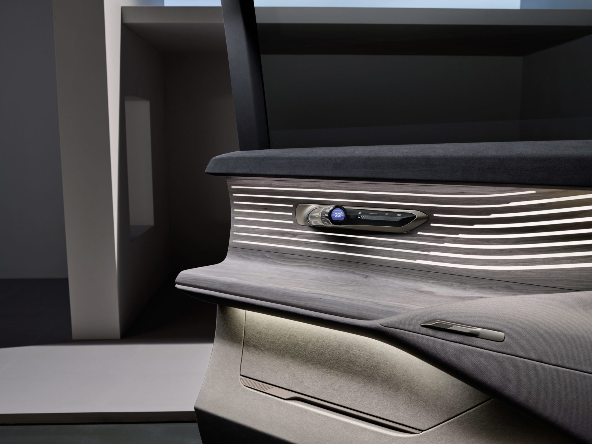 Ovládacie panely sú integrované do lakťových opierok na dverách. Vozidlo tak cestujúcim vždy ponúka neviditeľné dotykové plochy pomocou optického indikátora, ktorý zobrazuje svoju polohu. Zároveň sú v lakťových opierkach na dverách VR okuliare, ktoré možno použiť v spojení s možnosťami infotainmentu – napríklad pre systém Holoride. Tento by sa mal už v sériovom vozidle objaviť už v júni.