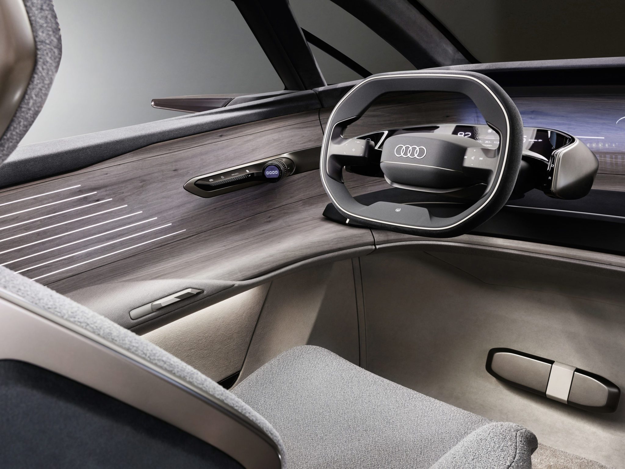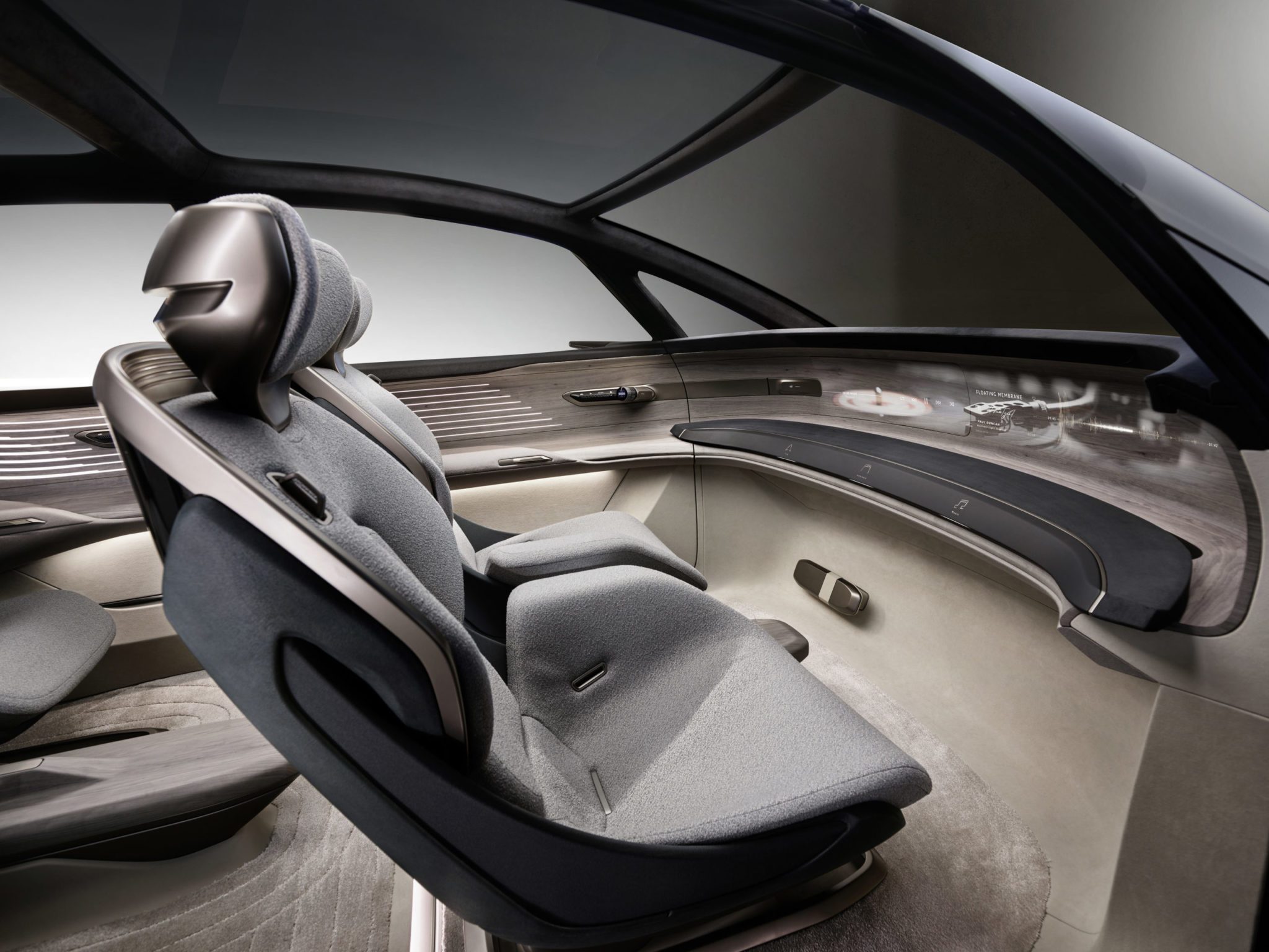 Ovládacie panely sú integrované do lakťových opierok na dverách. Vozidlo tak cestujúcim vždy ponúka neviditeľné dotykové plochy pomocou optického indikátora, ktorý zobrazuje svoju polohu. Zároveň sú v lakťových opierkach na dverách VR okuliare, ktoré možno použiť v spojení s možnosťami infotainmentu – napríklad pre systém Holoride. Tento by sa mal už v sériovom vozidle objaviť už v júni.