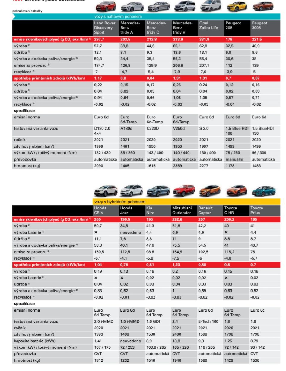 „Žiadne auto na ceste nespadlo z neba. Treba brať do úvahy každý krok, ktorým automobil prechádza počas celého svojho životného cyklu. Od ťažby a spracovania surovín až po zošrotovanie,“ povedala šéfredaktorka časopisu dTest Hana Hoffmannová. Ako príklad uviedla elektrický Fiat 500, ktorý síce počas jazdy neprodukuje žiadne emisie, no výroba tohto malého vozidla a produkcia elektriny, ktorú na pohon spotrebuje počas svojho životného cyklu, zaťaží ovzdušie 31 tonami ekvivalentu CO2. To je 24-krát viac, ako váži samotný automobil. Napríklad dvojtonový naftový Land Rover Discovery Sport predstavuje záťaž viac ako 70 ton ekvivalentu CO2.