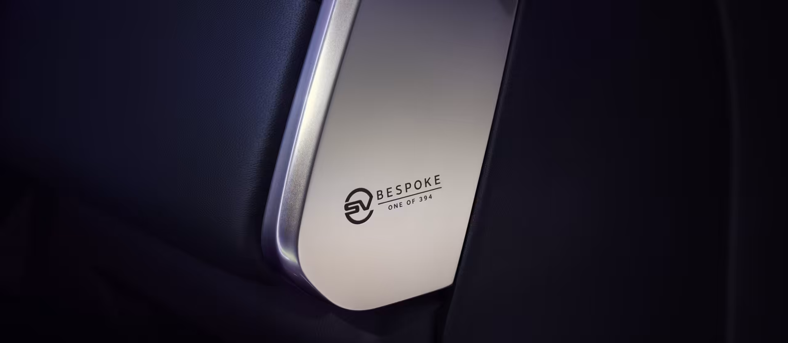 Logo Jaguaru a klaksón na volante majú saténovú čiernu povrchovú úpravu. Na osvetlených nášľapných plochách a prístrojovej doske na zase nachádzajú logá SV Bespoke a Edition 1988.