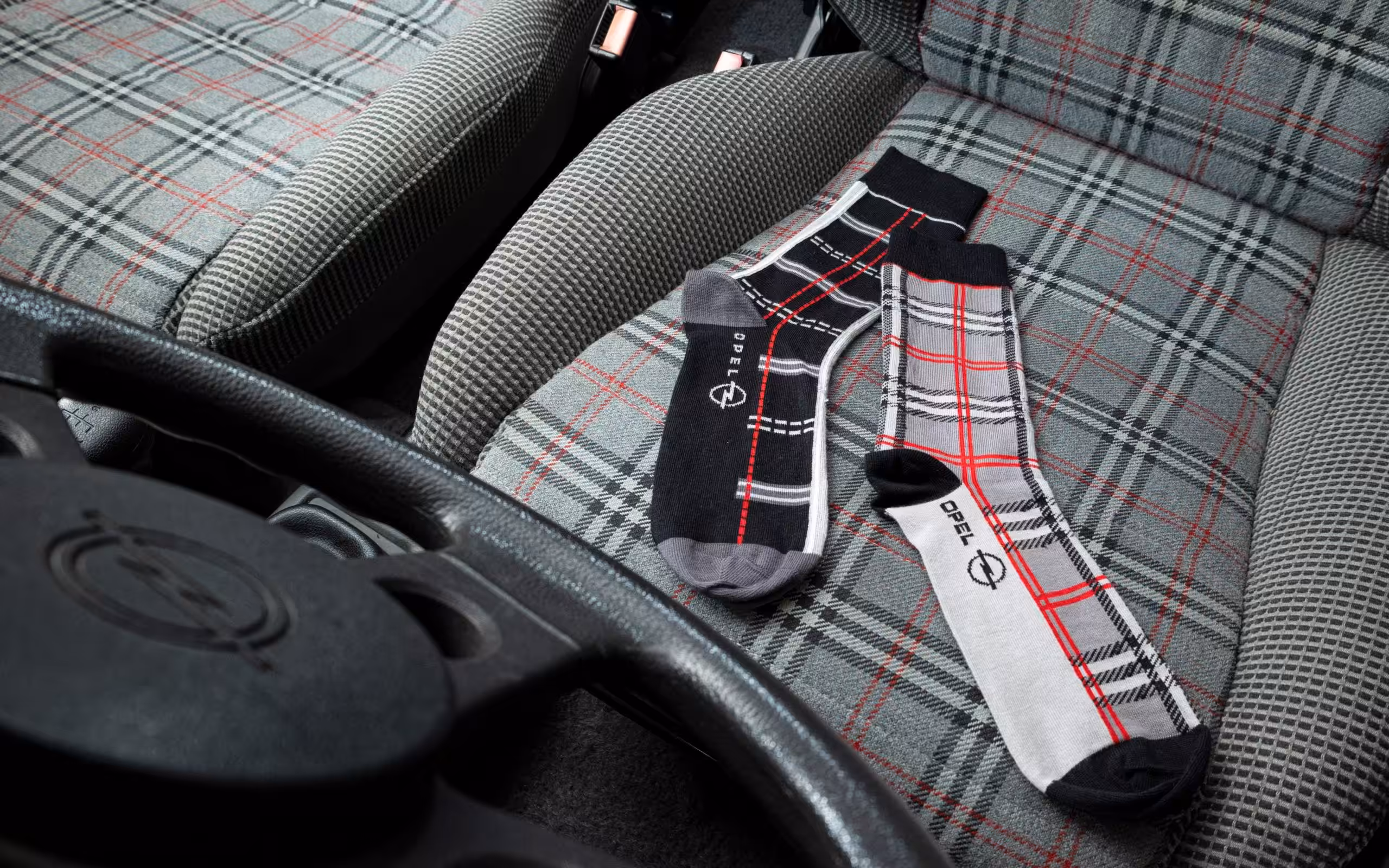 V interiéri bola aplikovaná moderná interpretácia pôvodného tartanového čalúnenia sedadiel. Tomuto vzoru ponúkne Opel aj možnosť objednania ponožiek v podobnom dizajne na e-shope automobilky (v čase písania článku v predaji ešte neboli).
