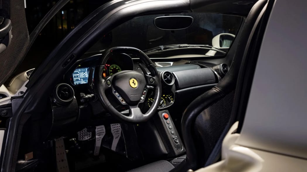 Aktuálne sa však Enzo nachádza v Kanade. Pred presunom sa mu však podarilo získať certifikát Ferrari Classiche a prešlo samozrejme pod rukami odborníkov v hongkongskom autorizovanom servise Ferrari. Interiér je odetý do sýto červenej kože Nero. Tá je hmatateľná na palubovke, volante a pochopiteľne aj sedadlách. Kožený interiér je doplnený o karbónové doplnky.