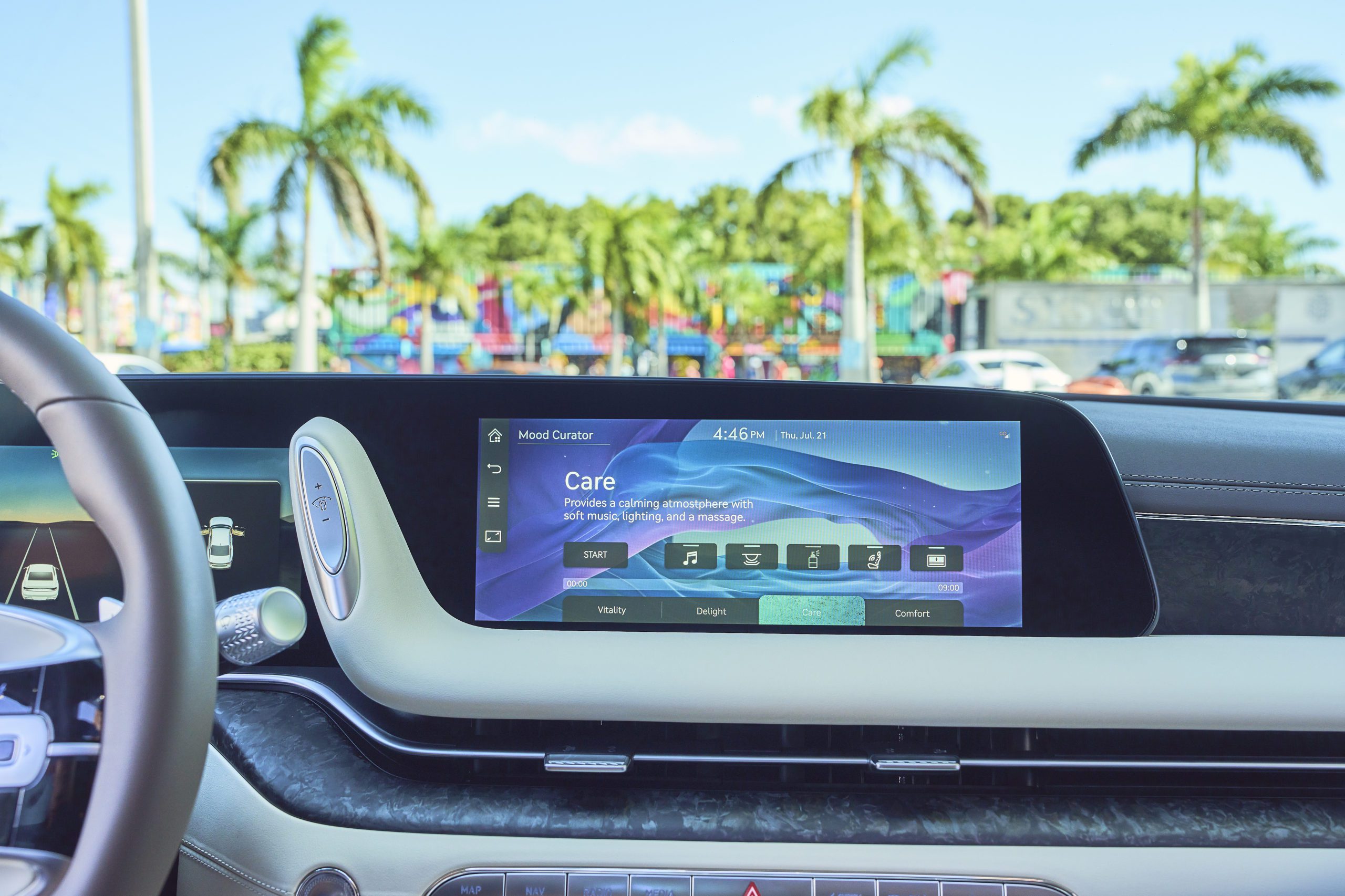 G90 tiež po prvýkrát prináša Mood Curator, úplne novú funkciu, do zostavy Genesis. Mood Curator umožňuje integrované ovládanie funkcií, ako je ambientné osvetlenie, zvukový systém, systém vôní, masážne sedadlá a elektrické závesy, aby sa vytvorilo prostredie, ktoré ešte viac umocní zážitok cestujúcich. Vozidlo ponúka štyri rôzne režimy nálady, pričom každý z nich možno prispôsobiť pre vysokú úroveň personalizácie. G90 vybavené najmodernejším infotainmentom so zakriveným displejom a aktualizáciou softvéru vzduchom (OTA). Takto možno vylepšovať na diaľku rôzne funkcie vozidla vrátane podvozka, navigácie, riadenia či asistentov, takže G90 ostáva neustále v dobrej kondícii.