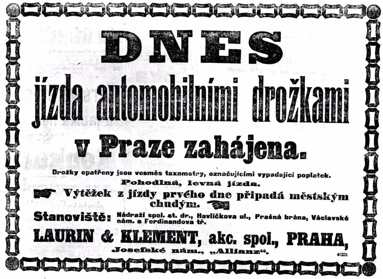Praha sa pred 115 rokmi vďaka automobilke Laurin & Klement stala prvým mestom rakúsko-uhorskej monarchie, ktoré zaviedlo taxislužbu. Netrvalo dlho a taxi-verzie spoľahlivých lauriniek slúžili už aj vo Viedni či v Paríži.