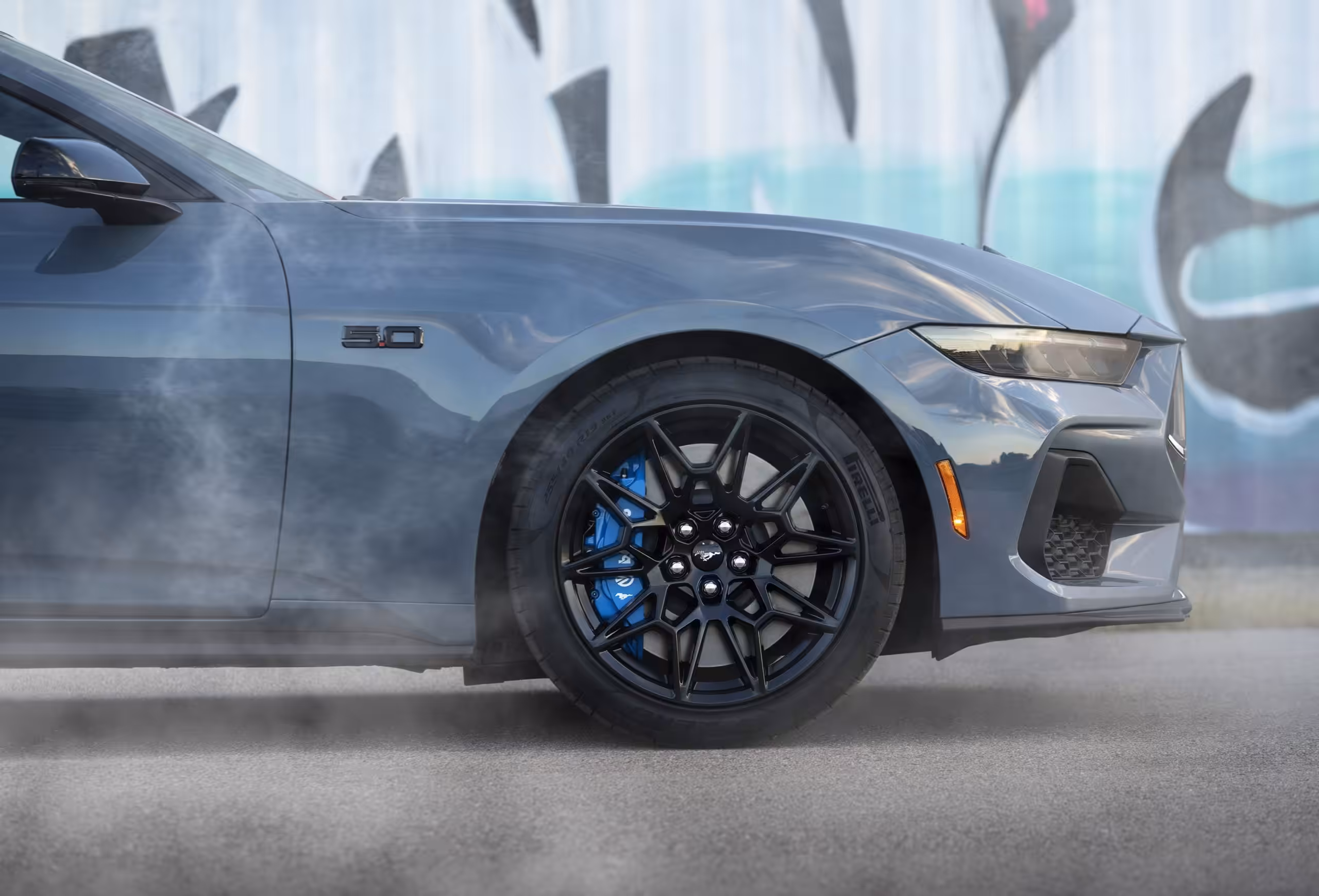 Moderná interpretácia dizajnového dedičstva, agresívny vzhľad prednej masky a návrat k dizajnu 60. rokov. Aj takto by sa dalo nazvať smerovanie novej siedmej generácie. Na rozdiel od modelu EcoBoost dostane Mustang GT nasávanie vzduchu na kapote. Evidentná je aj nová grafika predných svetiel, ktoré sú teraz užšie a dynamickejšie. Siedma generácia Mustangu prináša viac svalov a menej zbytočných línií. Líniu strechy inšpirovali závodné špeciály, široké boky zadnej časti nadväzujú na predĺžené veko kufru a ostré línie zadnej časti. Svetelný podpis zadných svetiel zasa odkazuje na predchodcov. K dispozícii budú nové farby karosérie, nové disky a bohaté možnosti individualizácie od farby karosérie až po prešívanie bezpečnostných pásov.