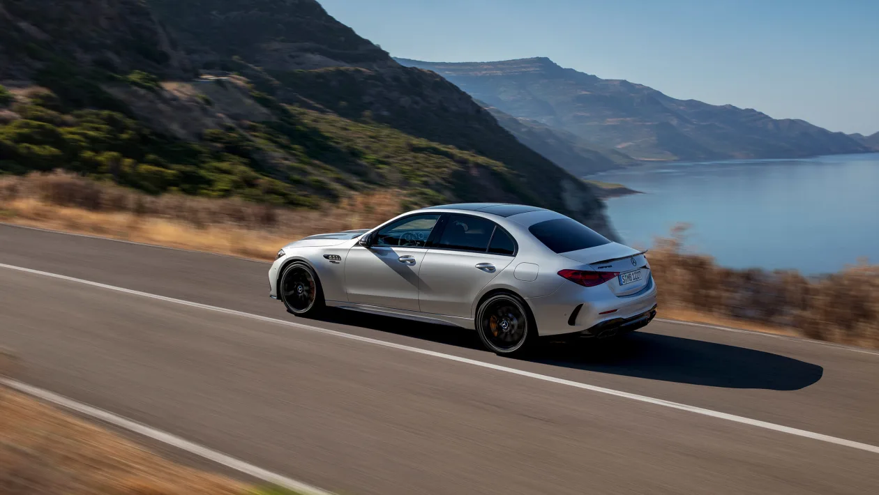 Prvýkrát má nový model C63 pod kapotou len štvorvalcový motor. Pokiaľ sa to niekomu zdá málo, ide o najvýkonnejší štvorvalcový motor v sériovom aute na svete. Pokiaľ sa aj toto zdá niekomu stále málo, na zadnej náprave sú umiestnené dva elektromotory, ktoré dokopy ponúknu až 150 kW. Kombinovaný výkon je teda neuveriteľných 680 koní a krútiaci moment 1020 Nm. Vďaka tomuto výkonu a pohonu všetkých štyroch kolies dokáže nový model akcelerovať z miesta na 100 km/h za slušných 3,4 sekundy, čo je o 0,6 sekundy rýchlejšie ako model s V8. Samotná batéria je nastavená skôr na maximálny výkon ako na dojazd. Aj preto novinka dokáže prejsť čisto na elektrický pohon podľa WLTP normy len 13 kilometrov.
