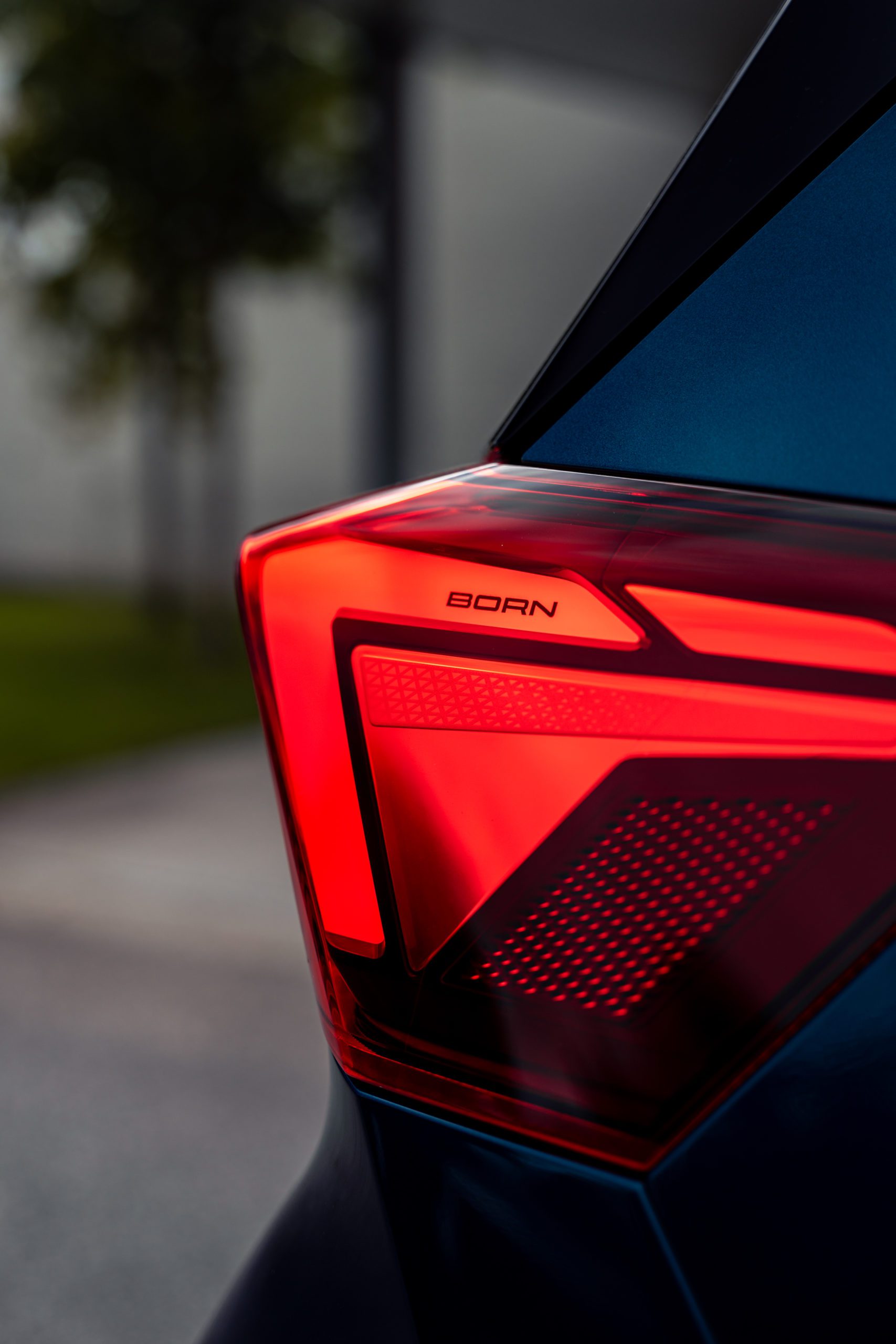 Typický agresívny prvok ako v prípade Formentora – dlhá kapota – tu nemohla byť použitá. Cupra Born sa preto spolieha na agresívnejšiu grafiku predných LED svetiel, matnú farbu karosérie a typické bronzové doplnky. Zadná, takmer vertikálne skosená časť, potrebuje vybrať tú správnu farebnú kombináciu. Inak sa môže stať, že Born bude vyzerať ako auto s celulitídou. Je to spôsobené kontrastom hladkých línií a zadného difúzora. Oba prvky sú dôležité pre aerodynamiku, ale ak to farebne prekombinujete, na ceste to bude pôsobiť zvláštne.