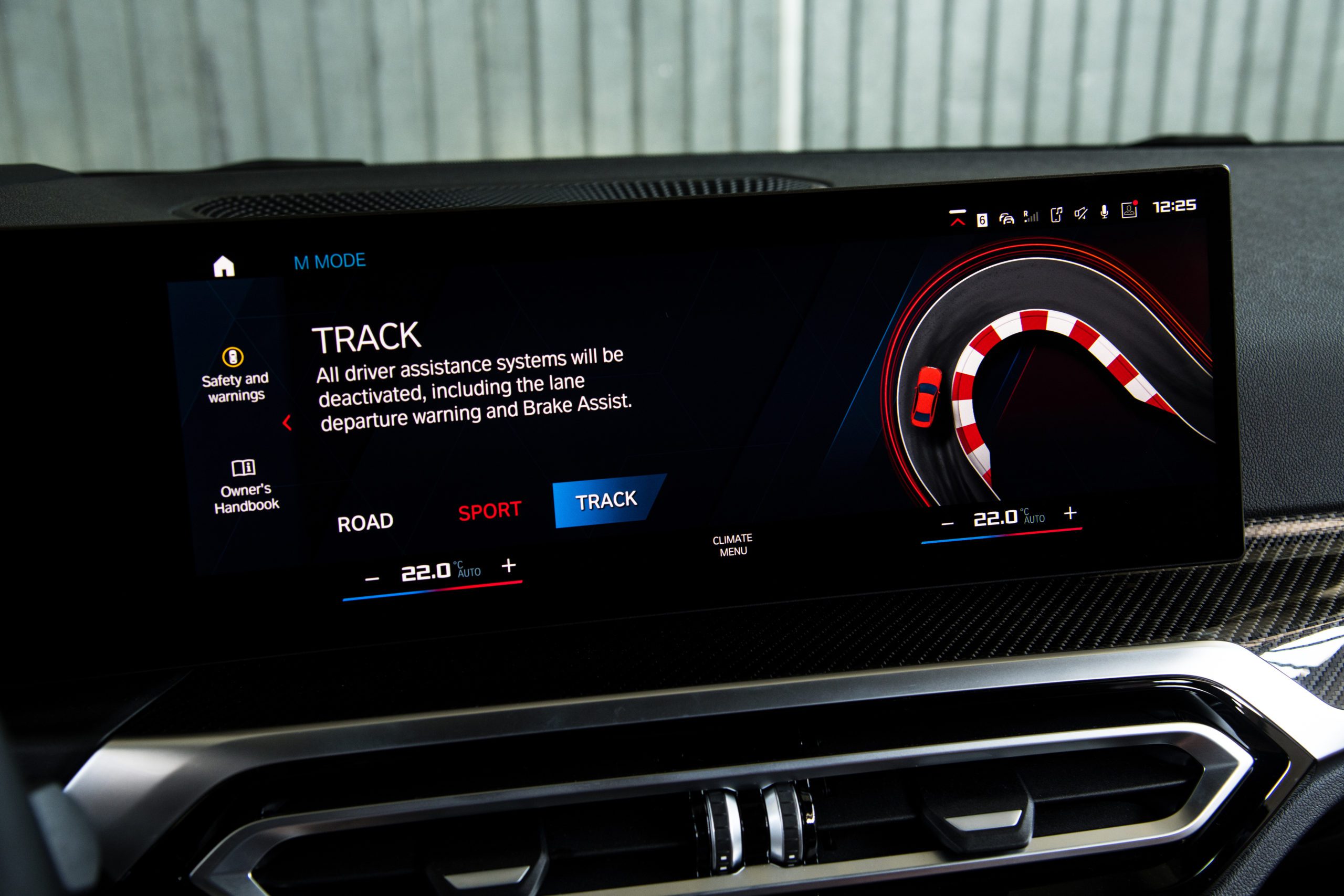 Tlačidlo M Mode je súčasťou panelu stredovej konzoly a ponúka jazdné režimy ako Road, Sport a Track. Systém Sport obmedzuje rozsah asistenčných systémov na minimum. Režim Track je určený pre závodné okruhy.