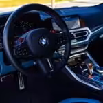 Súčasťou balíka sú tiež karbón-keramické brzdy. Brzdový pedál dovoľuje citlivo dávkovať brzdnú silu a brzdy majú ohromný účinok. Opakovane. Stále. Keď uvážim, že medzigeneračne sa pohotovostná hmotnosť M4 zvýšila o viac ako 200 kg, sú nevyhnutné. Obzvlášť, ak chcete pravidelne chodiť jazdiť na okruhy. Čo s takým autom určite chcete. Chcete ďalší dôvod? Ak na 3-4 sekundy podržíte pedál plynu na podlahe, na head-up displeji zrazu naskakujú také rýchlosti, ktoré by vás bez problémov dostali na facebookovú stránku polície. Kotúče s priemerom 400 mm vpredu a 380 mm vzadu sú istotou, na ktorú sa dá pri nájazde do zákruty vždy spoľahnúť. Kované disky majú v vpredu priemer 19 palcov, vzadu 20-palcov. Táto disharmónia je urobená schválne, v prospech lepších jazdných vlastností. Karbónové lišty v interiéri, karbónové panely na volante a karbónové pádla pod volantom sú už potom len takou povestnou čerešničkou na torte.