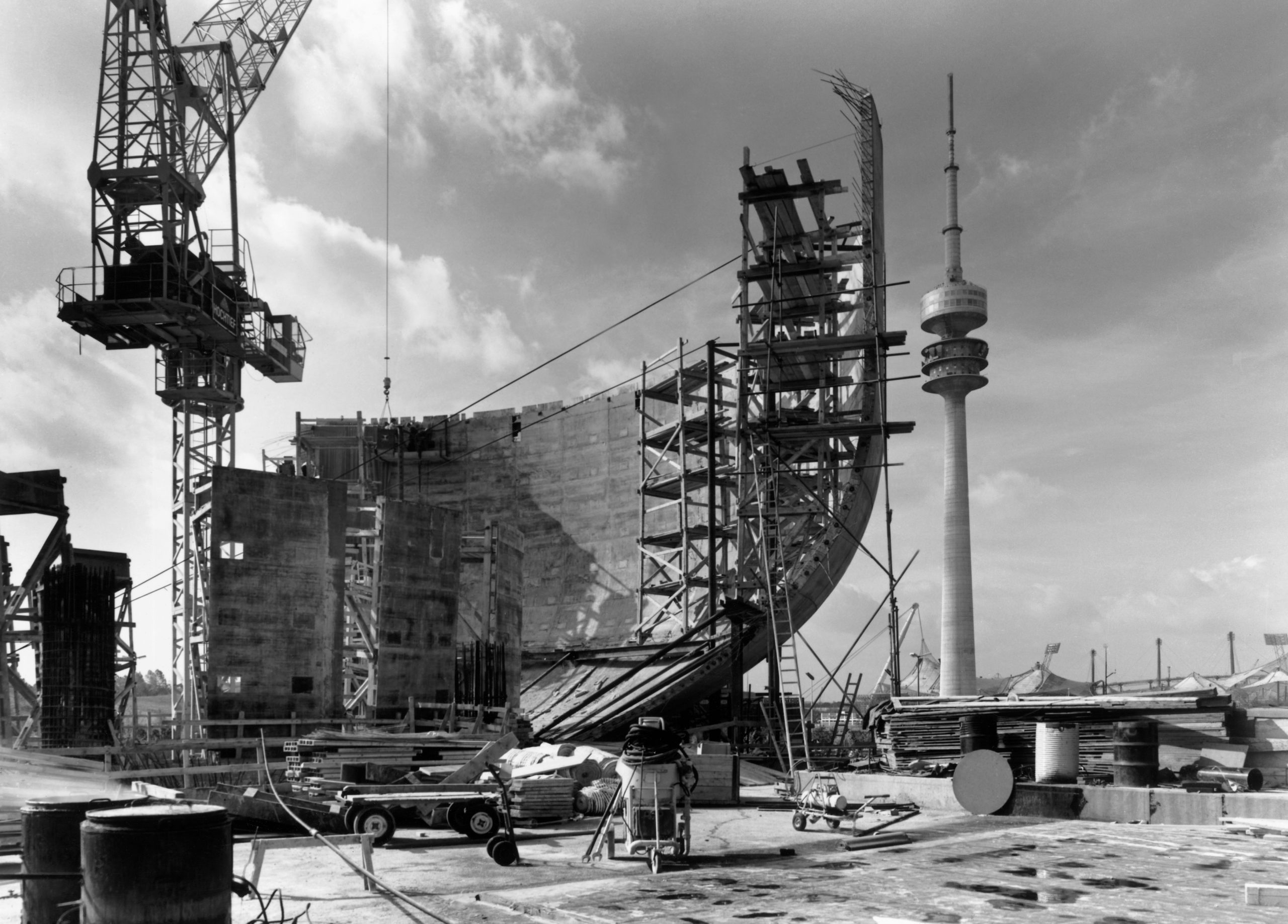 V rokoch 1970 až 1972 vznikla budova v Mníchove iba za 26 mesiacov. Výstavba si vyžiadala 3,5 milióna hodín a podieľalo sa na nej 500 staviteľov, 200 architektov, inžinierov a projektantov. Na budove sa nachádza viac ako 3 000 fasádnych prvkov, ktoré boli zhotovené v Európe vtedy nepoužívanou japonskou technikou liateho hliníka.