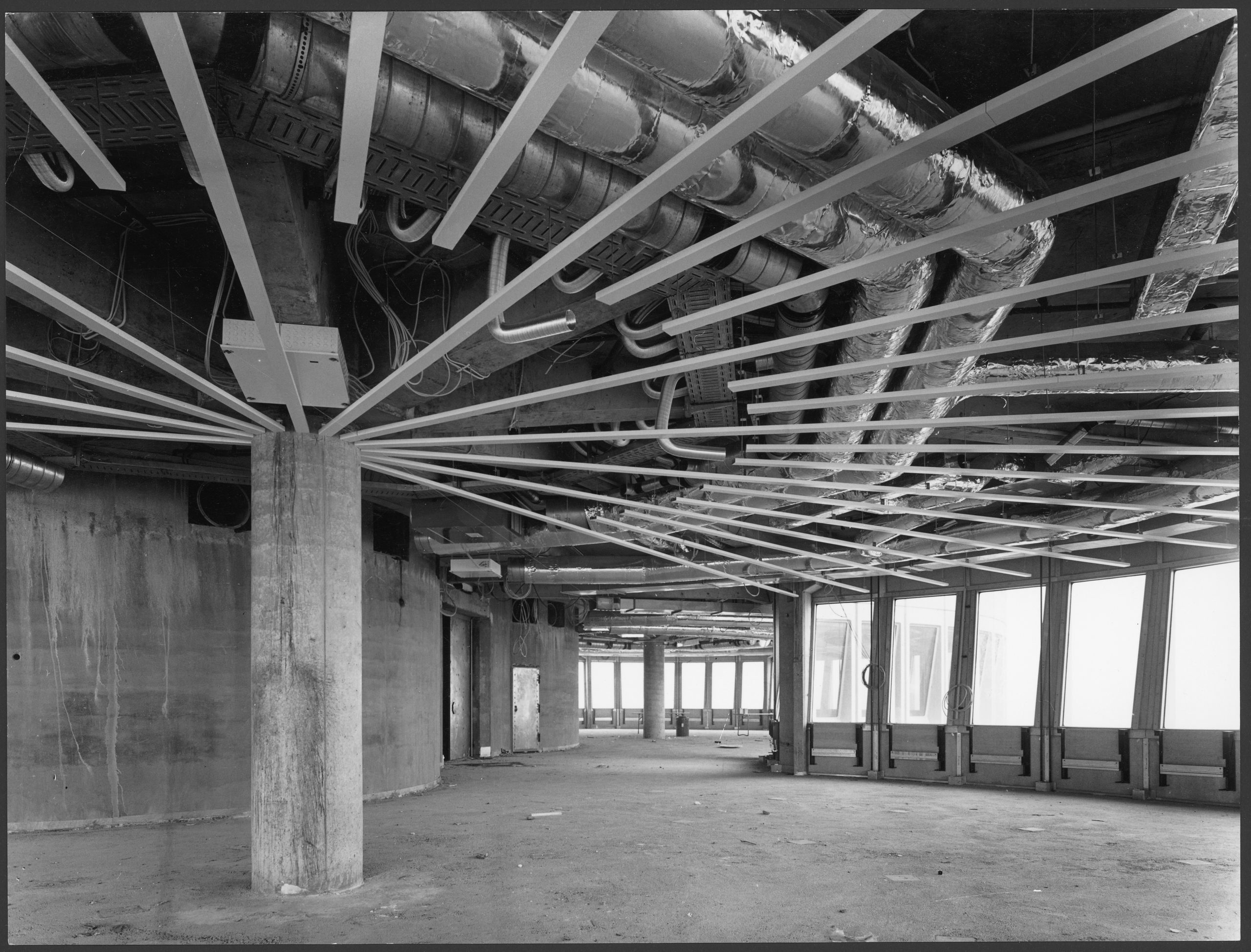 Budova totiž nebola stavaná zdola nahor ako to obvykle býva, ale horné poschodia boli najskôr postavené na zemi a až potom hydraulicky vyzdvihnuté na masívnej „vežovej šachte“ zo železobetónu a dokončené v niekoľkých segmentoch.