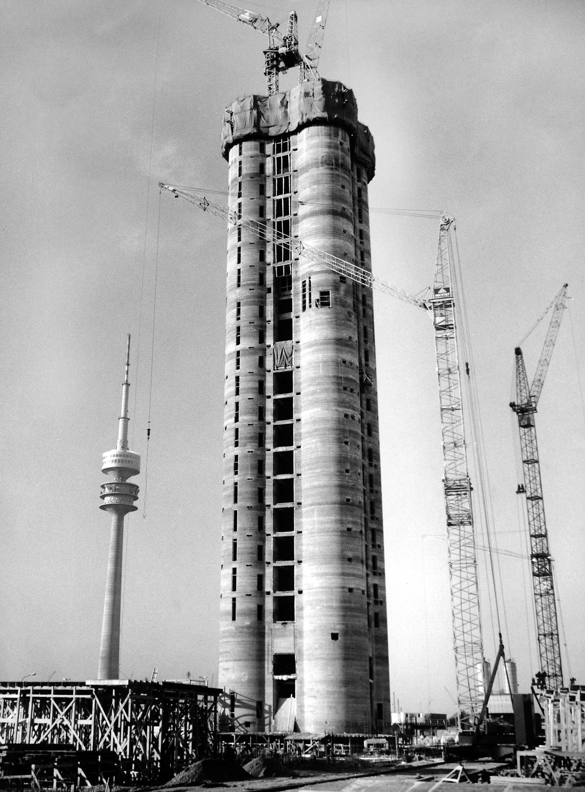 V rokoch 1970 až 1972 vznikla budova v Mníchove iba za 26 mesiacov. Výstavba si vyžiadala 3,5 milióna hodín a podieľalo sa na nej 500 staviteľov, 200 architektov, inžinierov a projektantov. Na budove sa nachádza viac ako 3 000 fasádnych prvkov, ktoré boli zhotovené v Európe vtedy nepoužívanou japonskou technikou liateho hliníka.