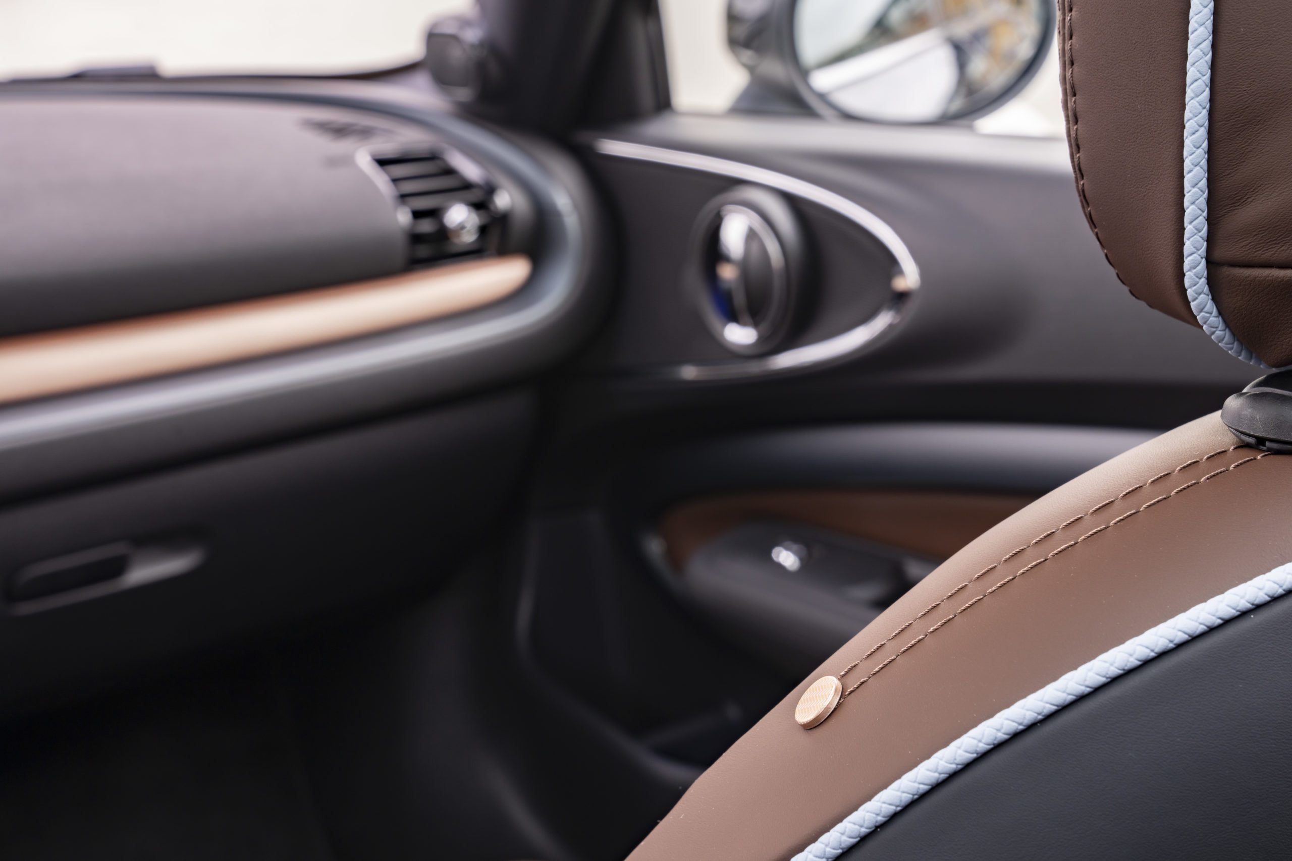 V kokpite ako prvé upúta tmavé obloženie palubnej dosky na stredovom prístrojovom paneli orámované ozdobnými lištami v matnej trblietavej zelenej farbe Sage Green Dark a v medenej farbe Shimmer Copper vytvorenej špeciálne pre túto edíciu. Exkluzivitu modelu MINI Clubman Final Edition pripomína plaketa na obložení na strane spolujazdca, na koberčekoch a grafický nápis zdobí aj kryt kľúča k automobilu.