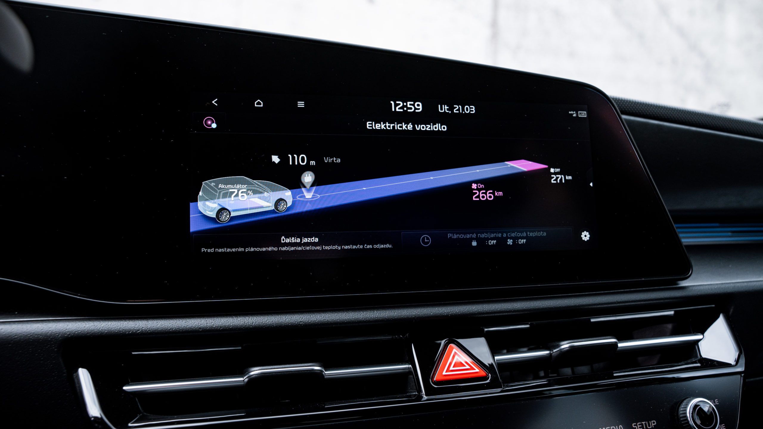 Ak často vozidlo využívate na prejazdy poľnými či inými nespevnenými cestami s výraznejšími hrboľmi, treba mať na pamäti, že svetlú výšku elektrického Nira limituje umiestnenie batérie. Tá vystupuje do priestoru, čím realne svetlú výšku znižuje a navyše nie je nijako špeciálne chránená voči kontaktu s cestou, preto zrovna toto Niro nebude úplne vhodným kandidátom na časté výjazdy do ľahšieho terénu. V porovnaní s verziami so spaľovacími motormi tu je odlišnosť aj v interiéri. Elektrické Niro disponuje úplne rovnou podlahou, ale je tak urobené len za cenu zdvihnutia podlahy. Urastenejšie osoby budú mať na zadných sedadlách vysoko položené kolená, čo pri dlhších trasách nie je úplne pohodlné. Mimochodom, celková hmotnosť batérie s kapacitou 64,8 kWh je 443 kg. Prostredníctvom mobilnej aplikácie si môžete predhriať alebo predchladiť auto, nastaviť začiatok nabíjania či sledovať stav vozidla.