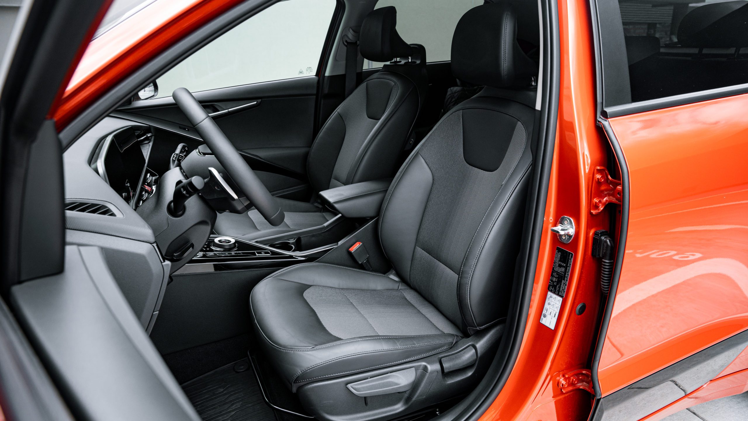 Interiér sa podobá modelu Sportage. Dva displeje sú združené pod jedným krycím sklom. Dotyková lišta pod výduchmi ventilácie má opäť dvojakú funkciu. Môže slúžiť na ovládanie klimatizácie alebo audiosystému. Na prepínanie týchto funkcií slúži samostatné tlačidlo. Pred spolujazdcom sa nachádza veľká odkladacia schránka a efektná lišta s ambientným osvetlením. Displeje sú vkusne zakomponované do palubnej dosky a nevytŕčajú do priestoru.