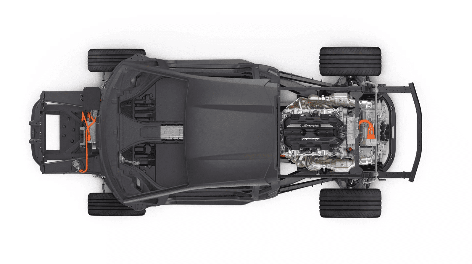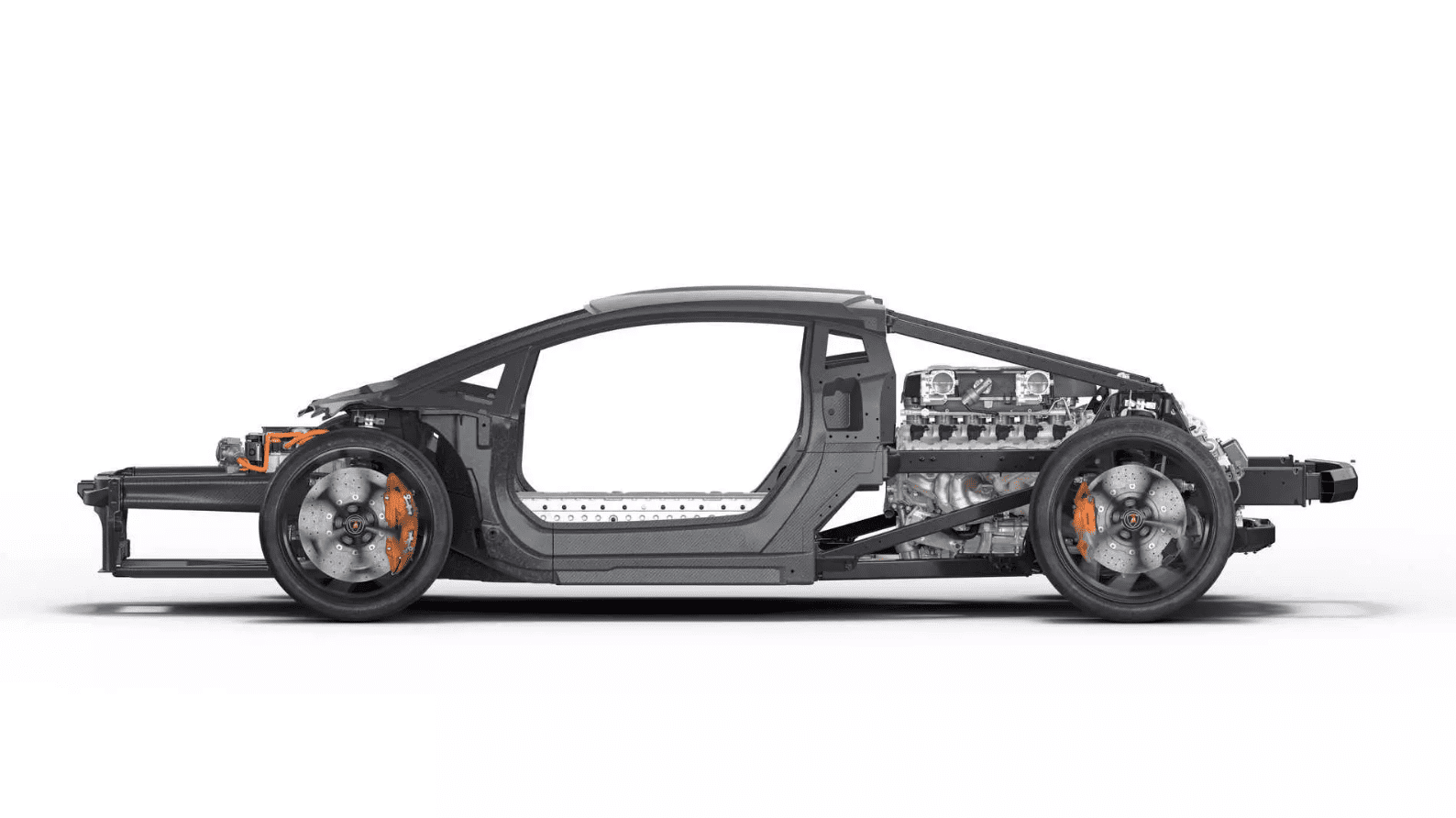 Okrem monokoku z uhlíkových vlákien však dostane nový model prednú konštrukciu zo špeciálneho materiálu. Ide o krátke uhlíkové vlákna napustené živicou. Ide o patent Lamborghini, ktorý bol zaregistrovaný ešte v roku 2008. Zavesenie zadných kolies je vyrobené z vysoko pevných hliníkových zliatin a nosnú štruktúru vozidla tvorí materiál s označením CFRP. Ide o plast, ktorý vystužujú uhlíkové vlákna.
