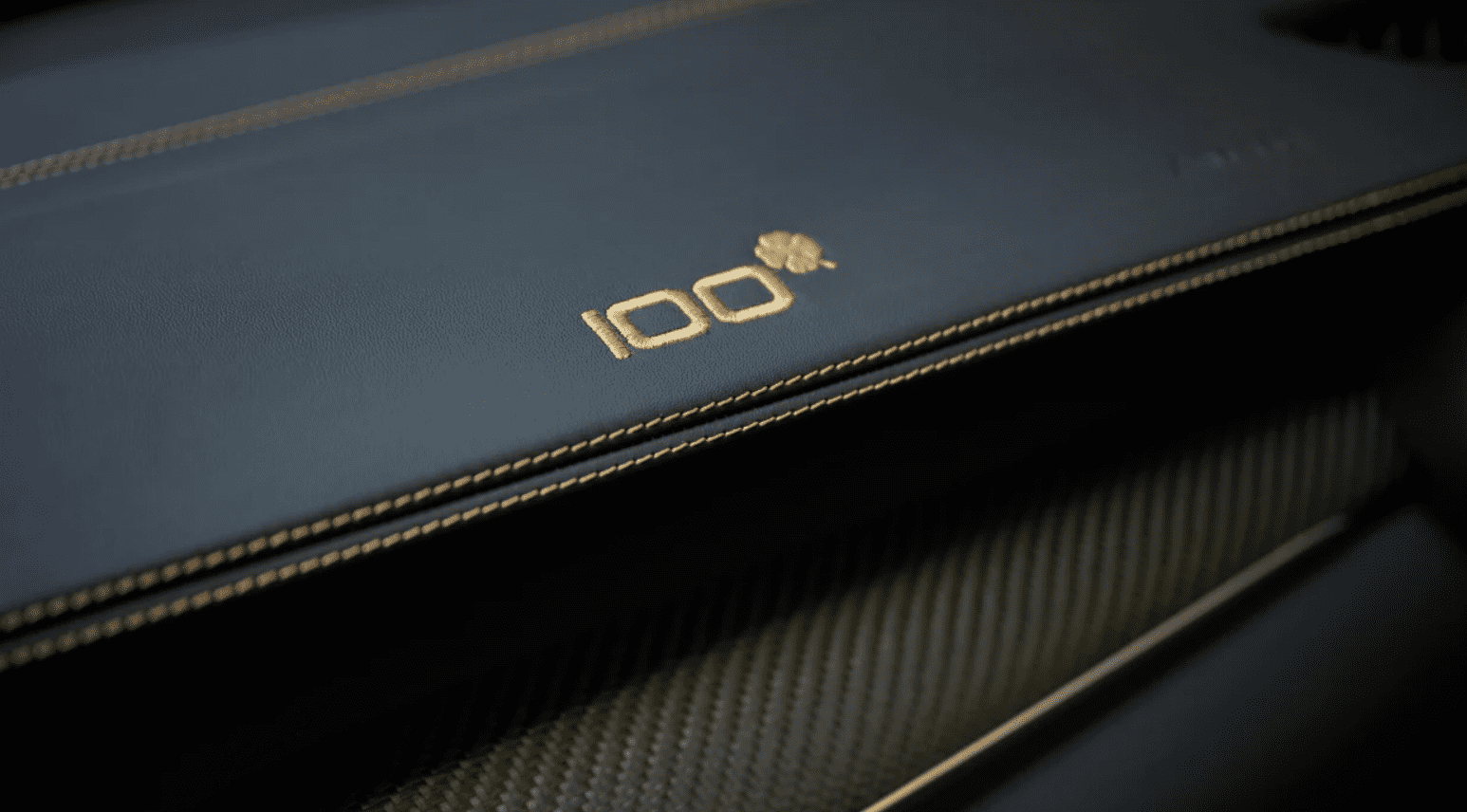 V interiéri nájdeme štandardné čierne a alcantarové obloženie zvýraznené zlatým prešívaním cez sedadlá, výplní dverí a palubnú dosku. K dispozícii majú potenciálni záujemcovia aj karbónový dekor palubnej dosky. Ani interiér sa nezaobíde bez odznakov odkazujúcich na 100. výročie. Aby odkazov nebolo málo, špeciálne prešívanie dostanú aj koberčeky a volant.