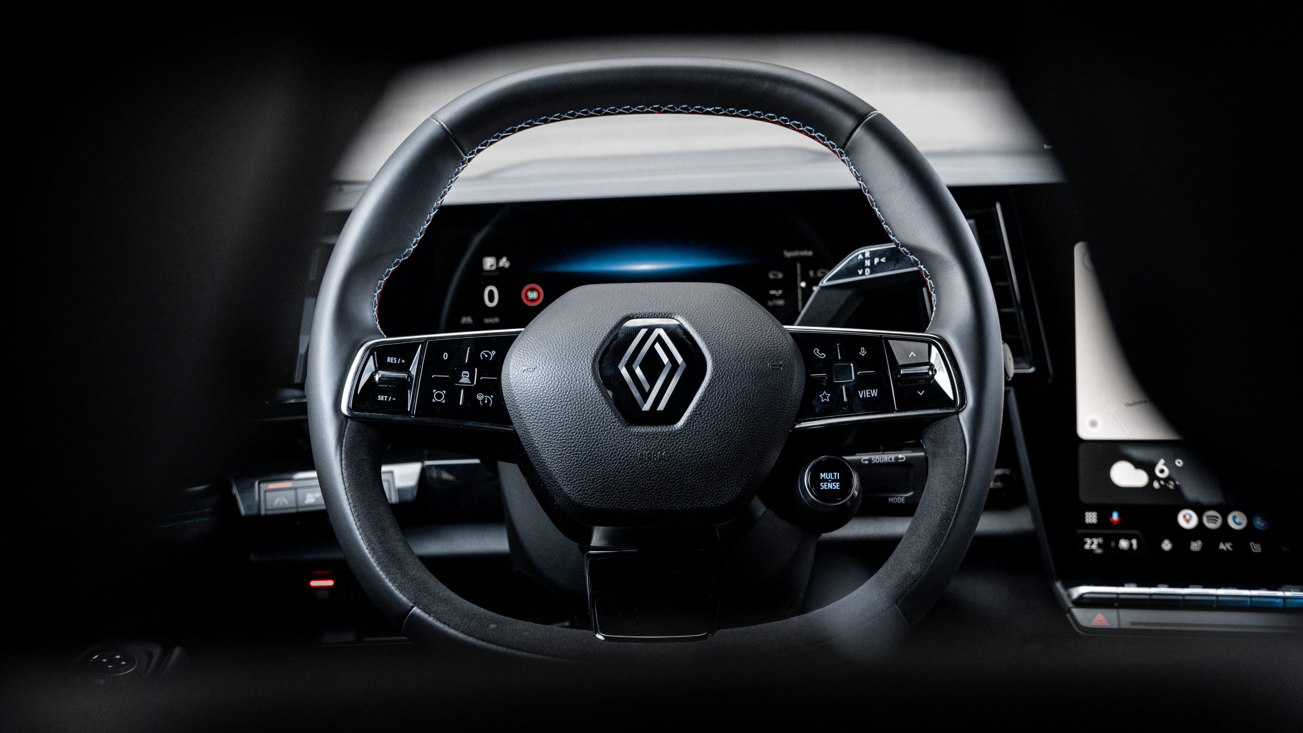Poteší aj pekne spracované ambientné osvetlenie, veľký HUD, prémiový zvukový systém Harman/Kardon či množstvo milých detailov v podobe francúzskej vlajky či obšívania. Škoda len, že Renault ostáva verný detašovanej páčke pod volantom na ovládanie hlasitosti a prepínania skladieb. Pod volant sa presťahoval aj volič automatickej prevodovky, a tak tam aktuálne svoje miesto majú až 3 páčky pod sebou. Prekvapivo si však nezavadzajú.