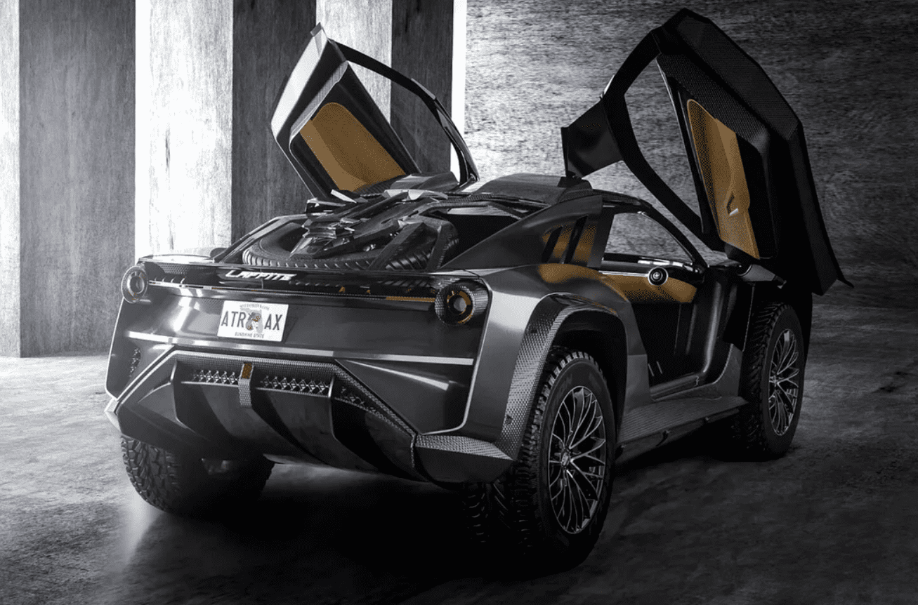 Posledným členom partie je model s názvom Atrax. Ide o niečo ako crossover s nádychom superšportu. Tento model by mal byť k dispozícii v dvoch verziách. Jedna z nich je viac off-roadová, druhá určená viac na bežné cesty. V prípade modelu Atrax sa výkon pohybuje na rovnakej úrovni ako model LM1. Teda pre zopakovanie 858 kW, 1 167 koní. Krútiaci moment však smeruje do bláznivých čísel a dosahuje hodnoty až 2 500 Nm.
