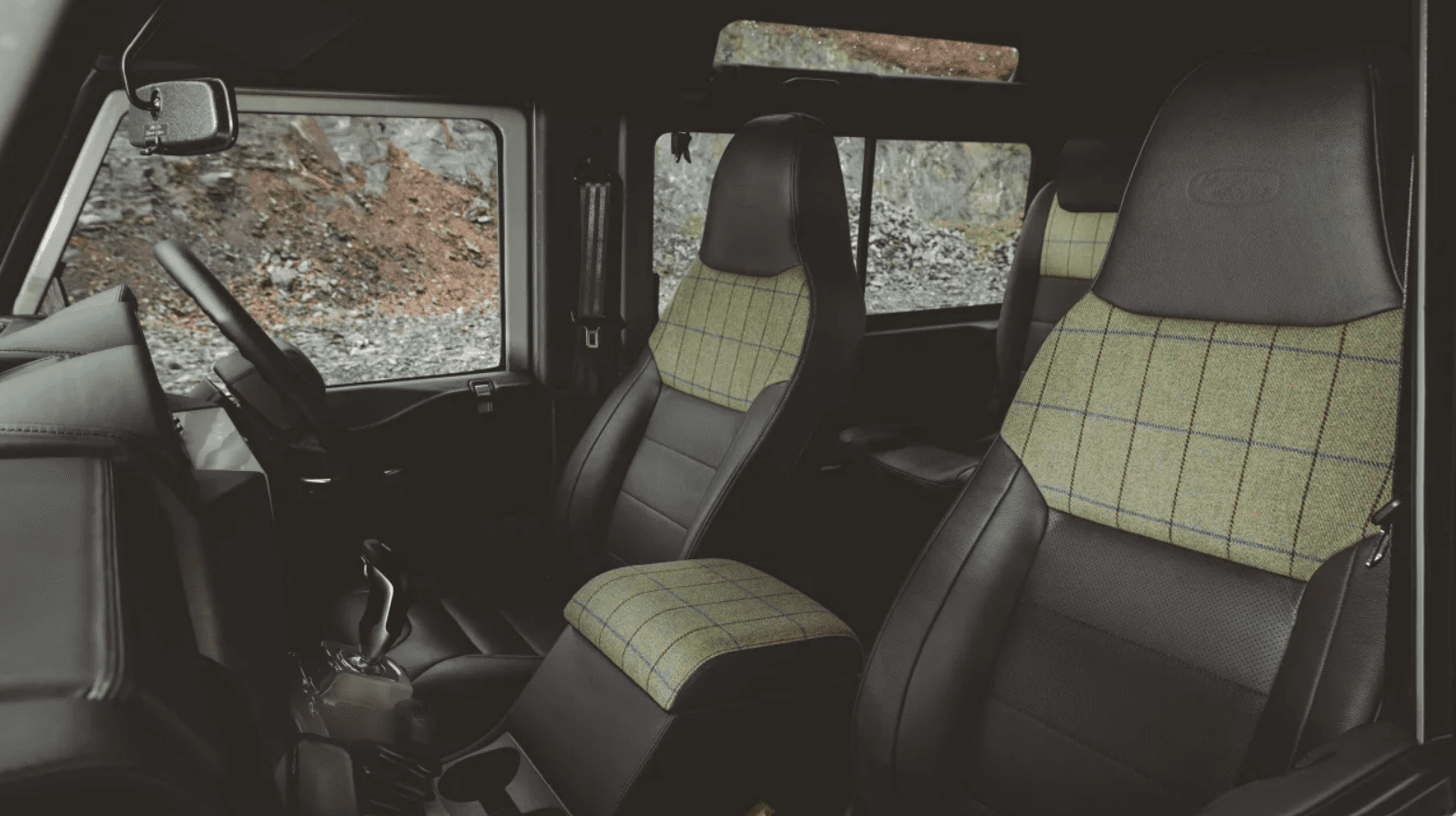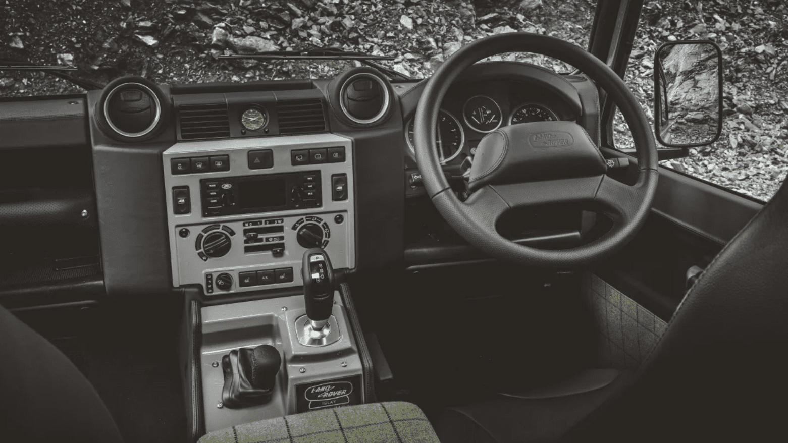 Ďalšie zmeny nastali v interiéri, kde sa nachádzajú detaily, ktoré vzdávajú hold histórii Defenderu. Sedadlá, bočné čalúnenie, obloženie strechy a palubná doska majú kožu „Windsor Ebony“ a stredová konzola a prístrojová doska majú rovnakú farbu ako exteriér. Malá plaketa vedľa radiacej páky rozpráva príbeh o tom, ako Ian Duncan povedal Wilksovi, že prvá séria, ktorú testoval, musí niesť názov „Land Rover“. Wilks nakoniec týmto názvom aj spoločnosť pomenoval. Špeciálny dizajn vytvorený spoločnosťou Islay Woolen Mill sa nachádza po celom interiéri Islay Edition.