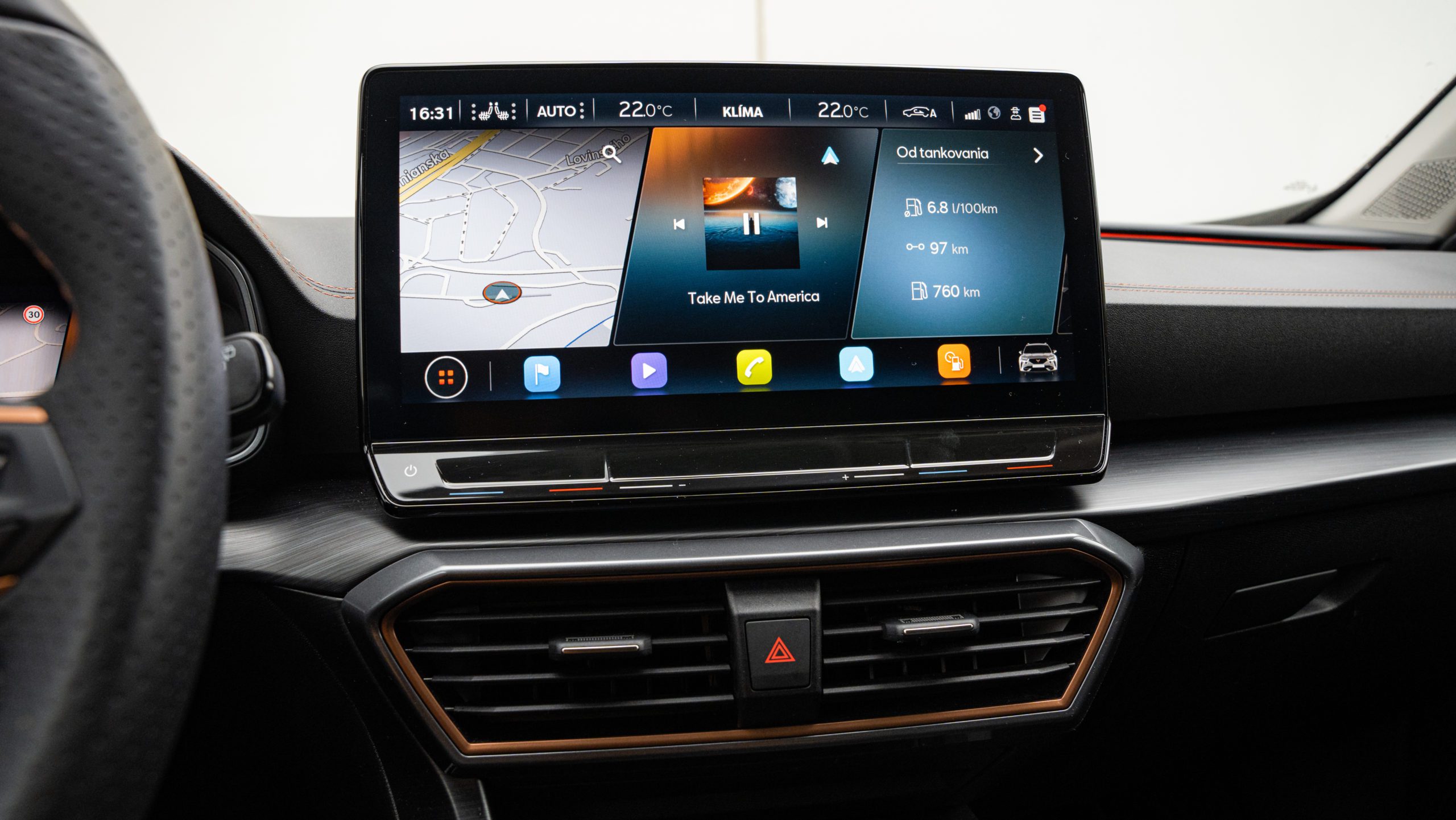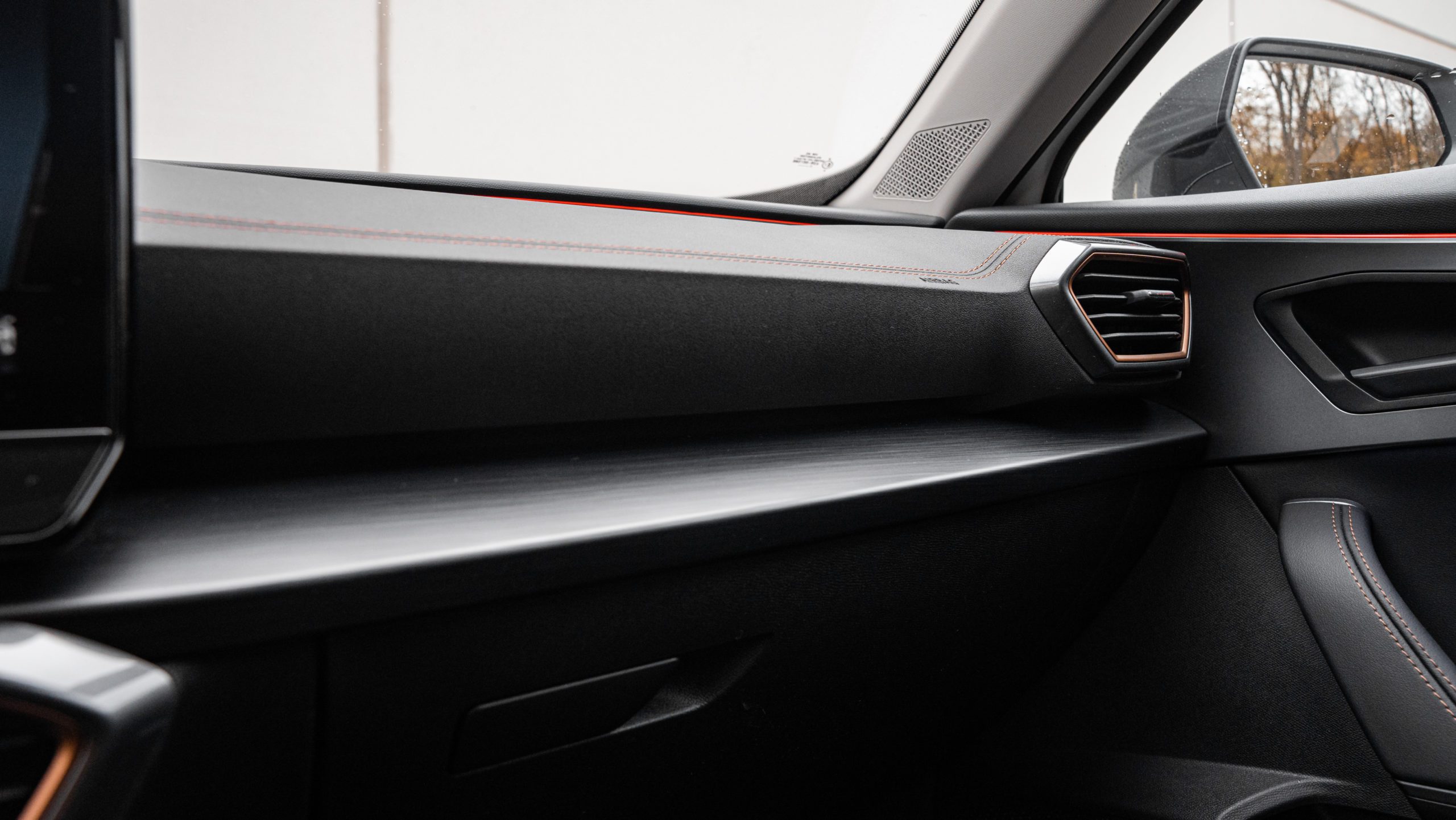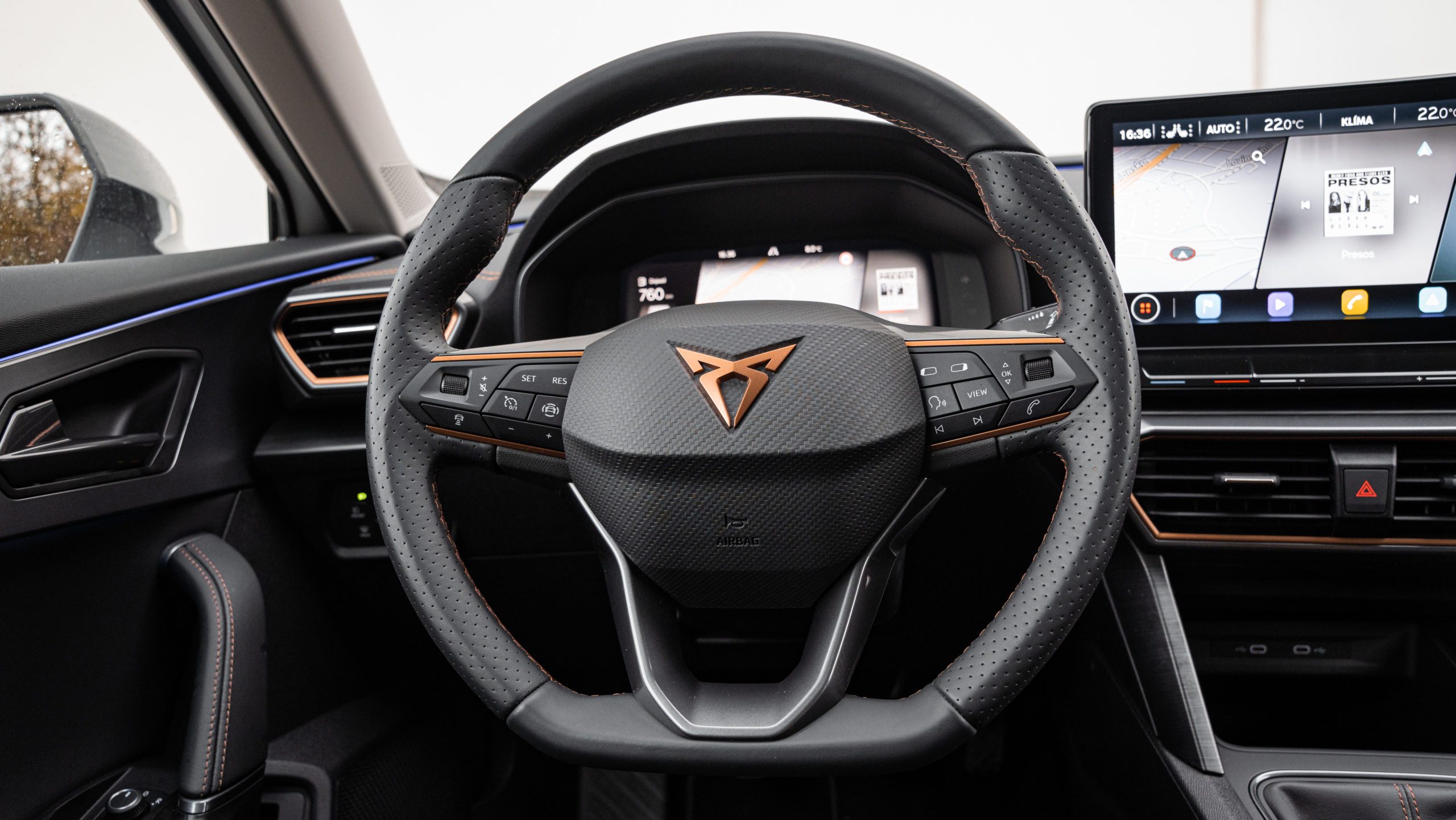 Aj keď nie je na mieste porovnávať spracovanie interiéru s koncernovými značkami ako Škoda alebo Seat, po usadení sa za krásne tvarovaný volant s medeným logom a zatvorení vodičových dverí sa ocitnete v celkom inej lige. Keď vodič odomkne vozidlo, Cupra Formentor privíta vodiča a spolujazdca uvítacím ceremoniálom, pričom na zem premietne logo automobilky. A keď cestujúci nastupujú do vozidla, prah dverí je osvetlený nápisom Cupra.