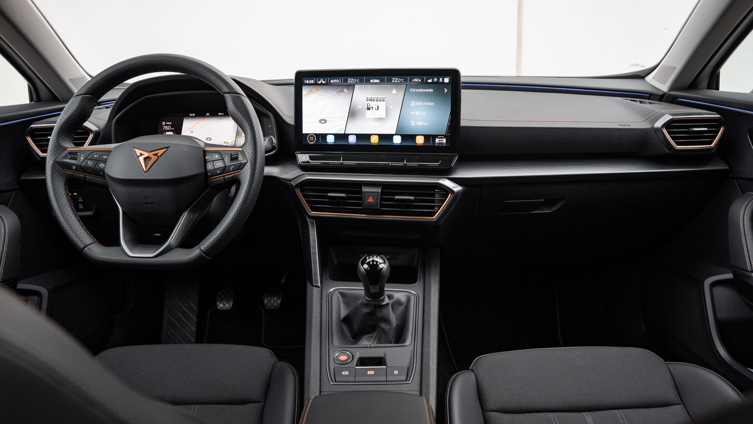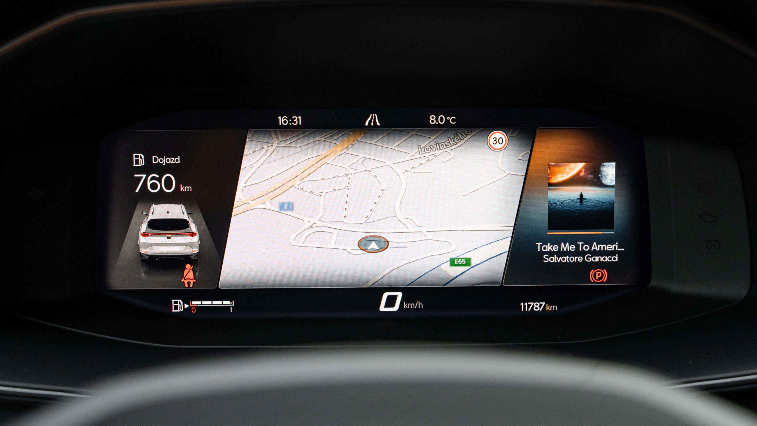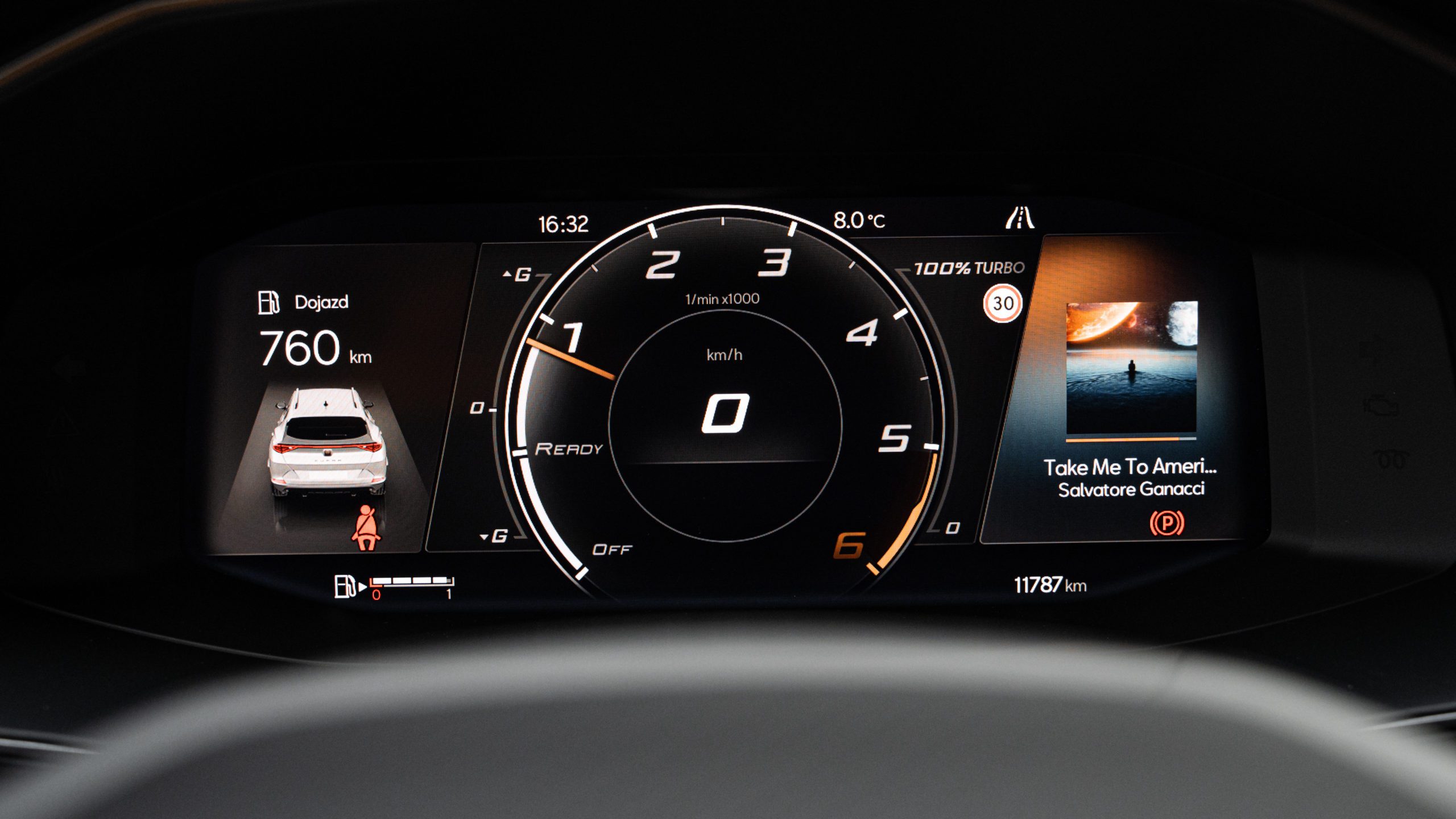 Aj keď nie je na mieste porovnávať spracovanie interiéru s koncernovými značkami ako Škoda alebo Seat, po usadení sa za krásne tvarovaný volant s medeným logom a zatvorení vodičových dverí sa ocitnete v celkom inej lige. Keď vodič odomkne vozidlo, Cupra Formentor privíta vodiča a spolujazdca uvítacím ceremoniálom, pričom na zem premietne logo automobilky. A keď cestujúci nastupujú do vozidla, prah dverí je osvetlený nápisom Cupra.