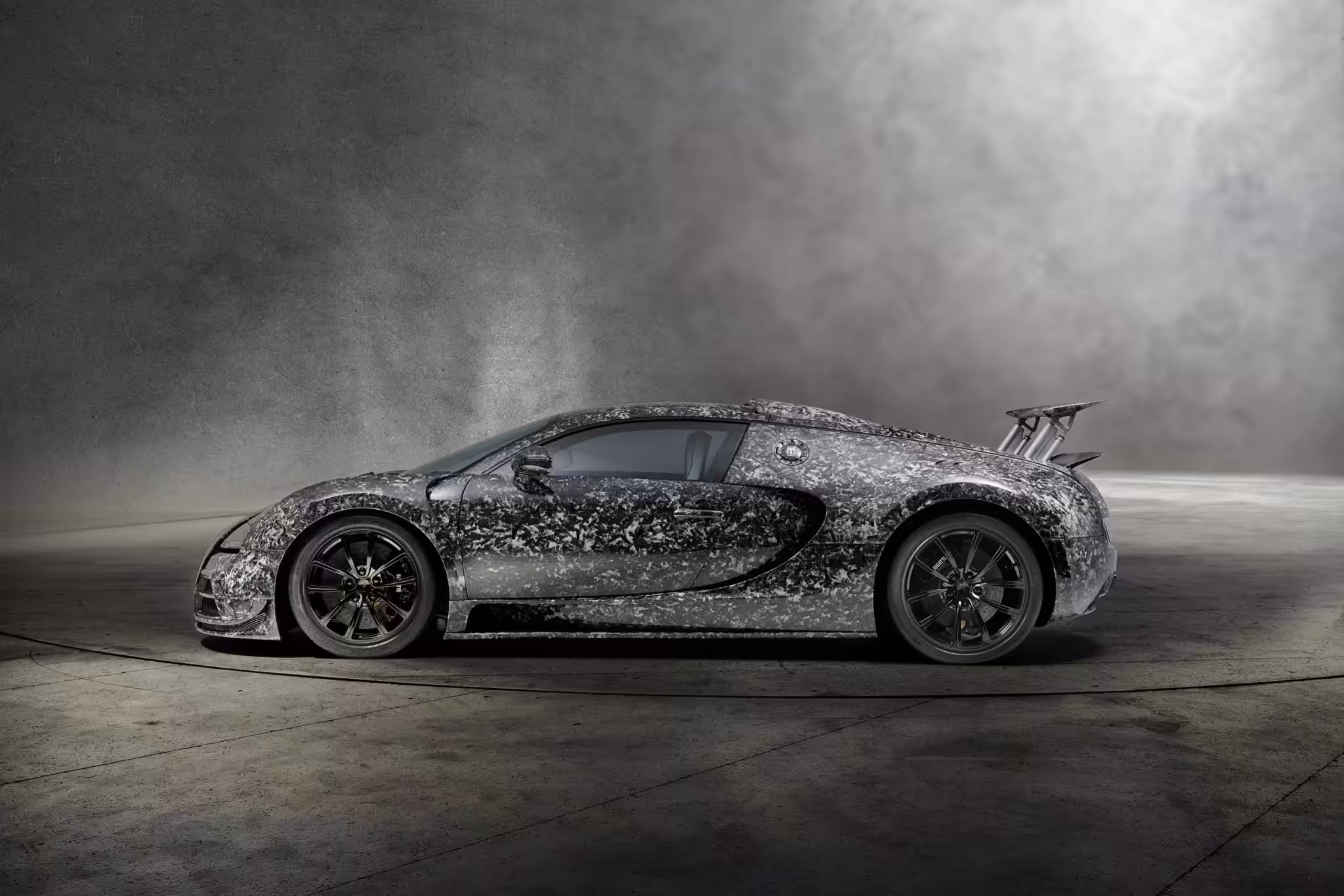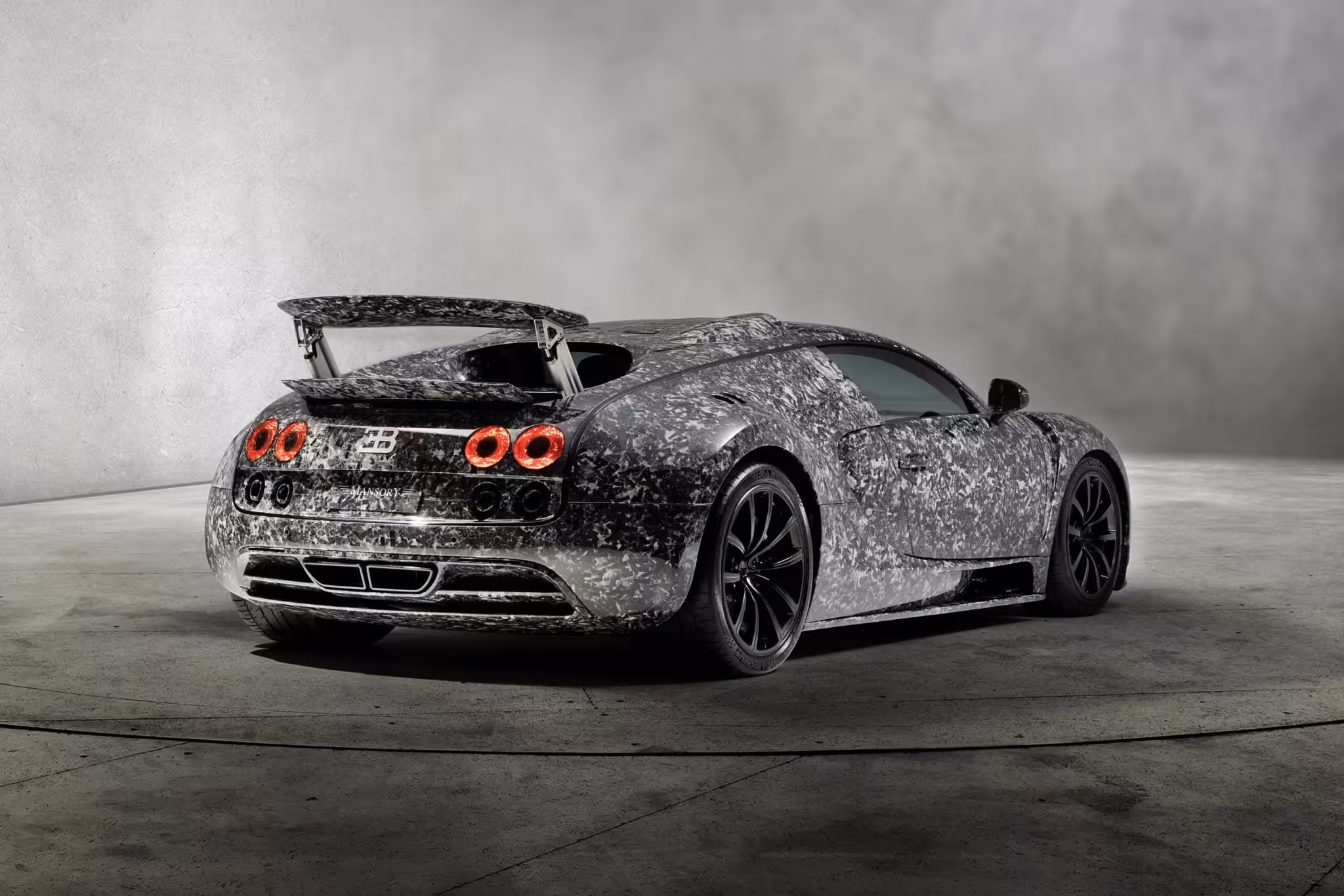 Napríklad toto Bugatti Veyron 16.4 je auto zákazníka úpravcu. Majiteľ dal zvolenie na jeho vystavenie priamo v stánku značky Mansory. Vyzerá veľmi zaujímavo, ako keby majiteľ chcel na auto nalepiť maskáčovú fóliu, ktorých po svete behá veľmi veľa. To je však omyl. Toto auto má totiž úplne novú karosériu.