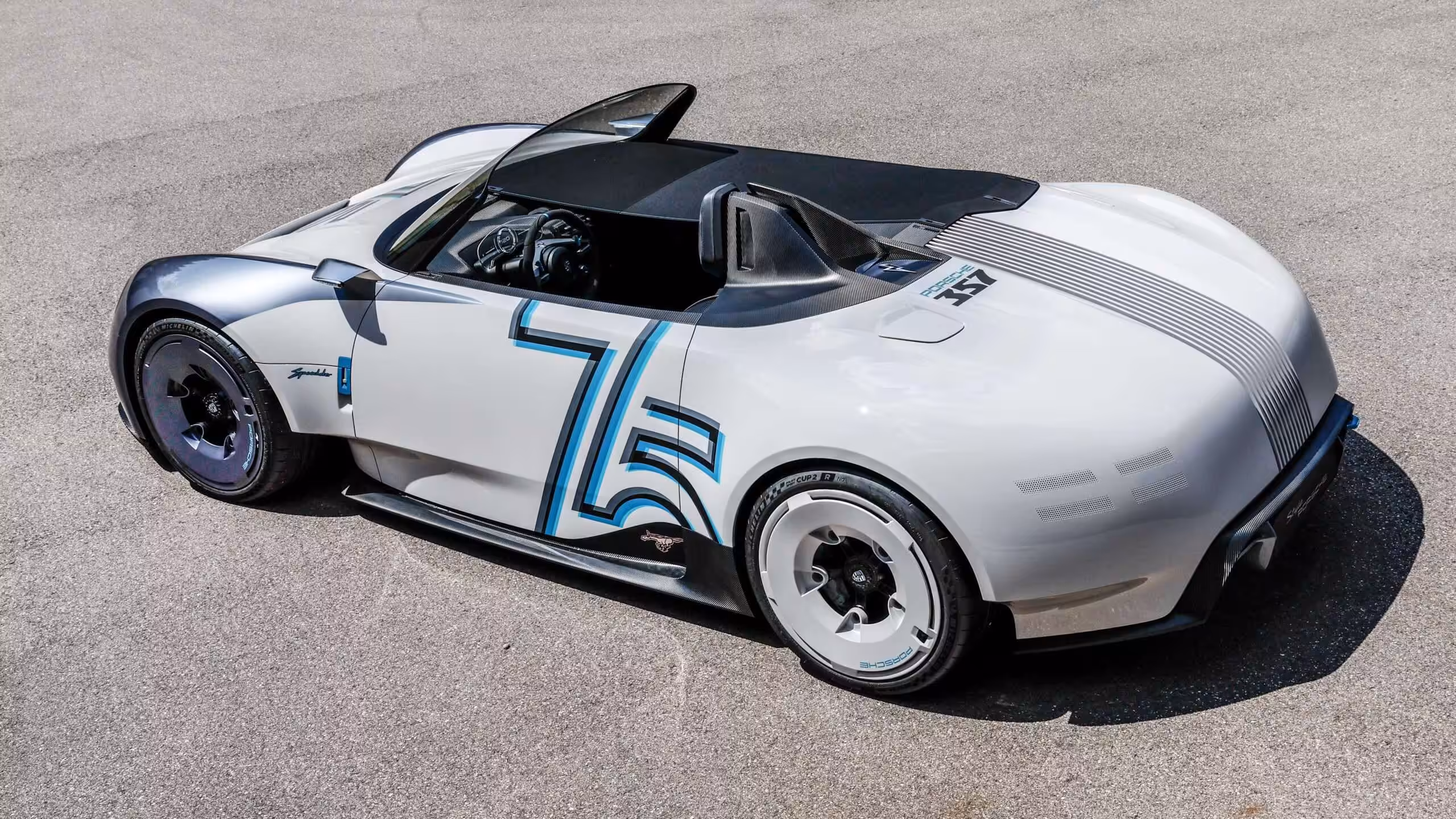 Koncepčný automobil má skrátené čelné sklo, typické pre speedster. Na pravej strane sa tiahne kryt batožinového priestoru typu, ktorý bol kedysi bežný na otvorených športových autách. Opierka hlavy vodiča sa javí ako zavesená vo vzduchu vďaka technicky navrhnutému karbónovému prvku pre prevrátenie. Za ňou sú dvierka nabíjacieho portu a ukotvenie pre klasický vrchný diel speedsteru.