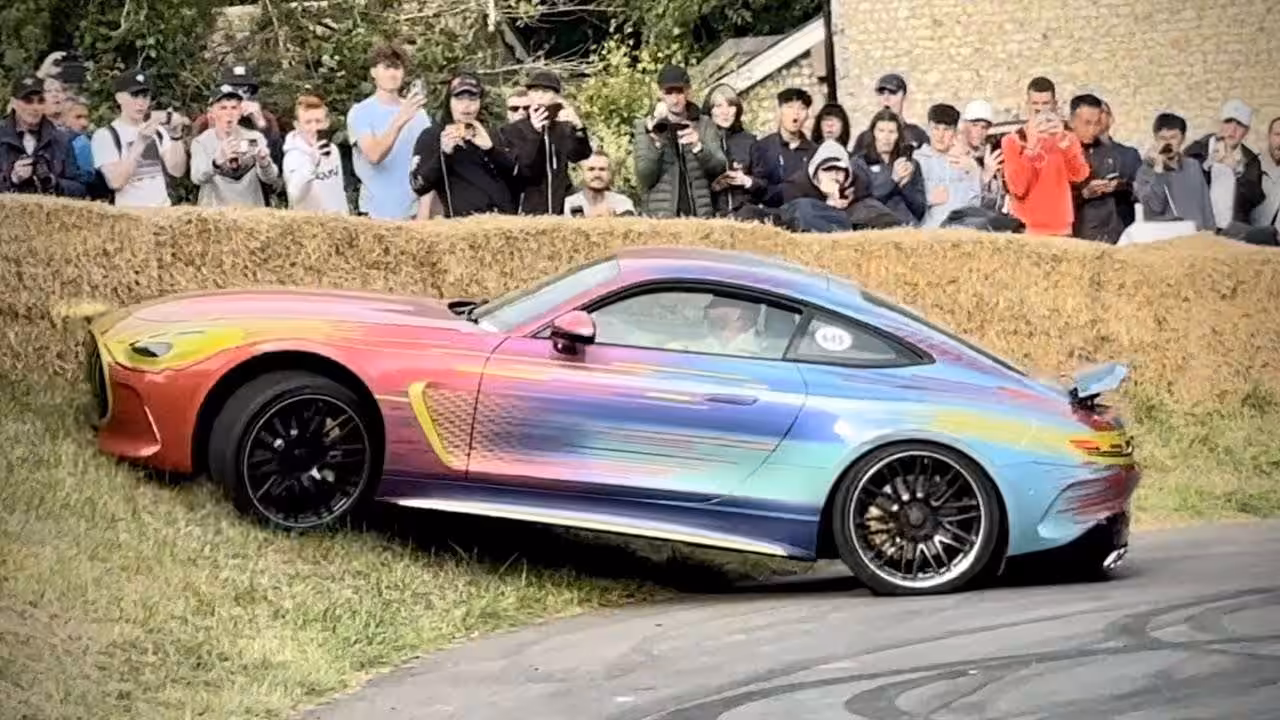 Jedným zo stoviek športových áut, ktoré sa uplynulý víkend objavili na Festivale rýchlosti v Goodwoode, bol aj maskovaný prototyp druhej generácie Mercedesu AMG GT Coupé. Konkurent Porsche 911 divákov zaujal hutným zvukom benzínového motora, ale z dohľadu verejnosti napokon odchádzal so šrámami na karosérii.