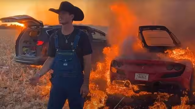 Video ukazuje, ako aj krátka jazda po poli môže spôsobiť požiar vozidla, ktorý sa začne rýchlo šíriť. Keďže osadenstvo nemalo po ruke žiadny hasiaci prístroj a vlastne ani nič iné na hasenie požiaru, Ferrari F8 aj minivan z požičovne zhoreli do tla.
