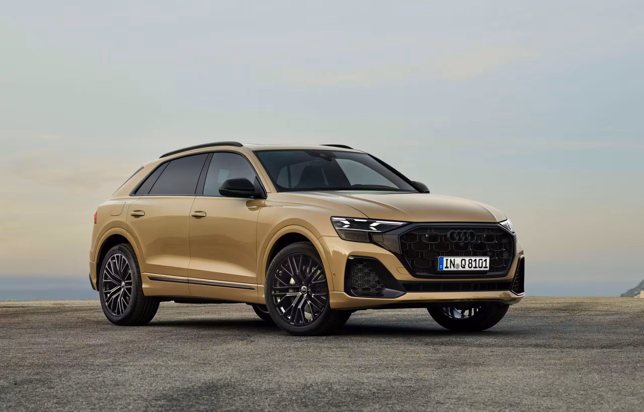 So svojím expresívnym dizajnom je prepracované Audi Q8 športovým, no pritom stále elegantným SUV. Krátke previsy karosérie a dlhý rázvor vytvárajú elegantné proporcie, ktoré možno zvýrazniť výraznými farbami exteriéru či novými typmi diskov kolies. Maska chladiča Audi Singleframe s osemuholníkovým dizajnom teraz zaujme vertikálnymi intarziami. V základnej výbave sú usporiadané v tvare slzy, v exteriérovom balíku S line majú tvar písmena L. Sebavedomý vzhľad Q8 podčiarkujú nové výrazné otvory na prívod vzduchu, ktoré sú jasne integrované do základnej architektúry auta.