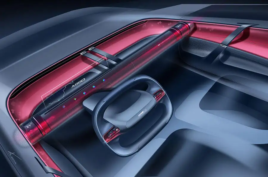 Pri konceptoch je bežné, že pôsobia enormne futuristicky. V tomto prípade dizajnéri posunuli interiér na úplne iný level. Do kabíny sa dostane dostatok svetla cez presklenú strechu. Tá filtruje 100 % ultrafialového žiarenia. Zároveň zvyšuje celkovú torznú tuhosť karosérie. Dvere s dvojitými pántami je možné otvárať aj v stiesnenejších priestoroch. Samotní pasažieri sa budú cítiť ako v bavlnke. Usadia sa do komfortných škrupinových sedadiel. Pred vodičom je malý, štvorcový volant umiestnený nižšie, pre maximalizovanie komfortu a ešte lepší výhľad z kabíny.