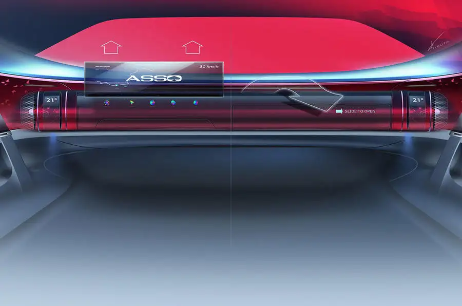 Koncept zostal stále praktickým. Podľa Italdesign pojme predný batožinový priestor až dva stredne veľké cestovné kufre. Pôvodnému návrhu zostala verná aj prístrojová doska. Tá má valcový tvar a je v nej umiestnená obrazovka infotainmentu. Samotná obrazovka je otočná a posádka ju môže úplne skryť, aby nerozptylovala. Niektoré ovládacie prvky sú úplne priehľadné, ako napríklad ovládače audia. Ďalším odkazom na pôvodný návrh sú kožené bezpečnostné pásy, ktoré ladia s lakťovými opierkami.