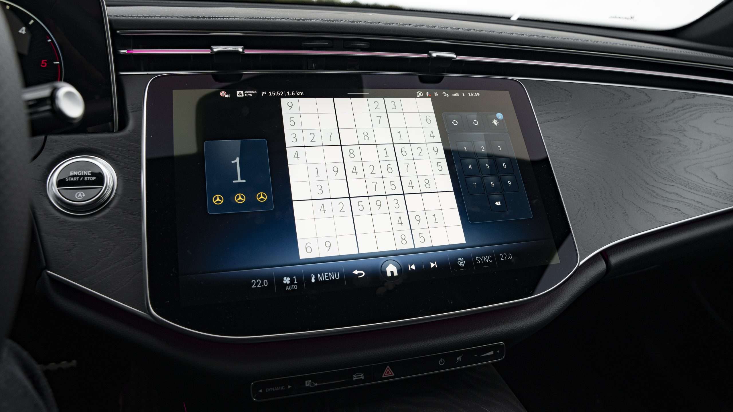 Keď sme sa v kabíne začali hrať s obrazovkou a jej menu, hneď sme si všimli podstatné vylepšenie systému MBUX spočívajúce v prechode na vlastný operačný systém Mercedesu a inštalácie jedného centrálneho procesora. Nový typ sieťového prepojenia tak zvyšuje výkonnosť a rýchlosť dátových tokov. Samozrejmosťou je dátový prenos 5G, avšak novinkou je možnosť sťahovania aplikácií od tretích strán.