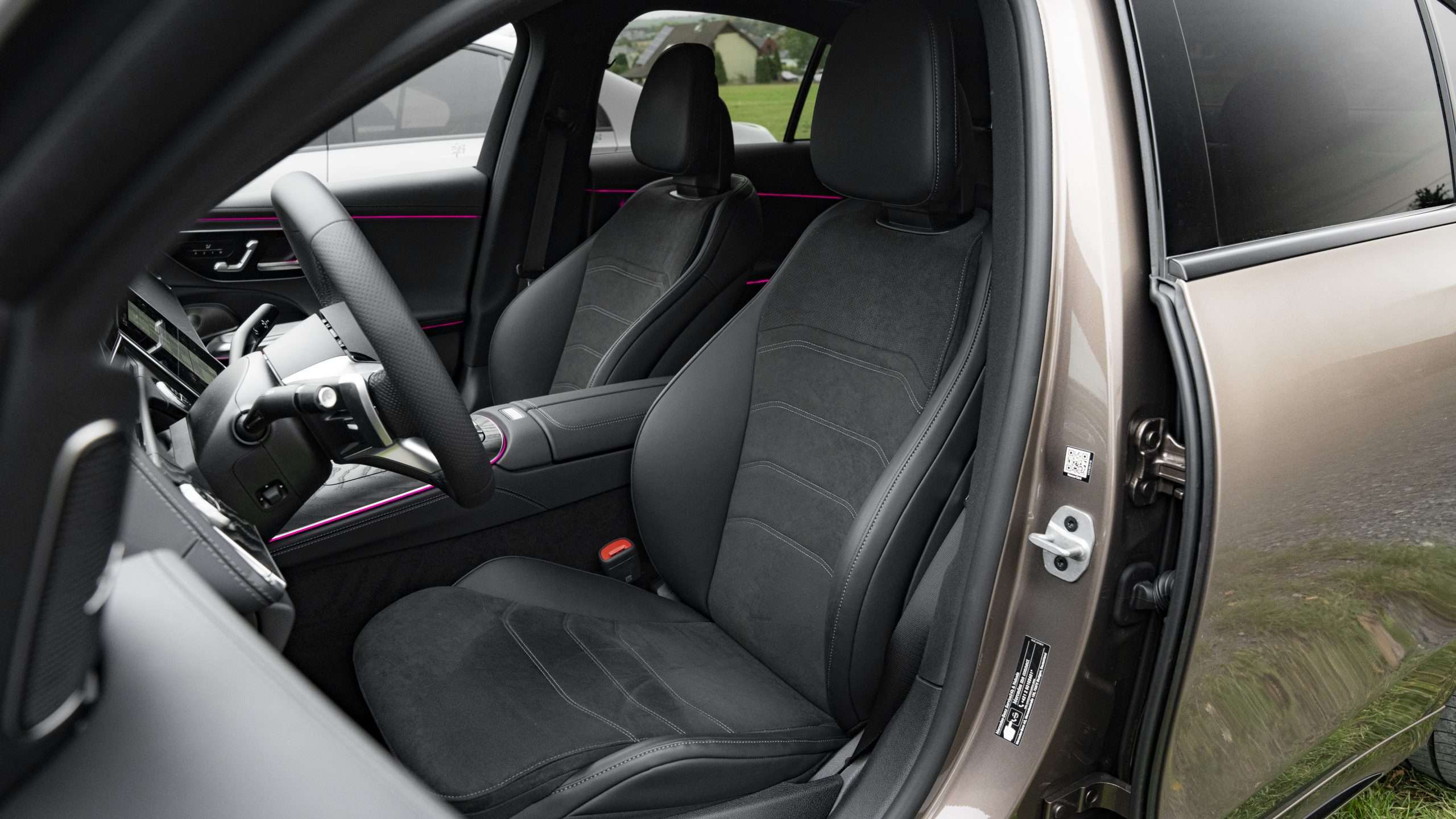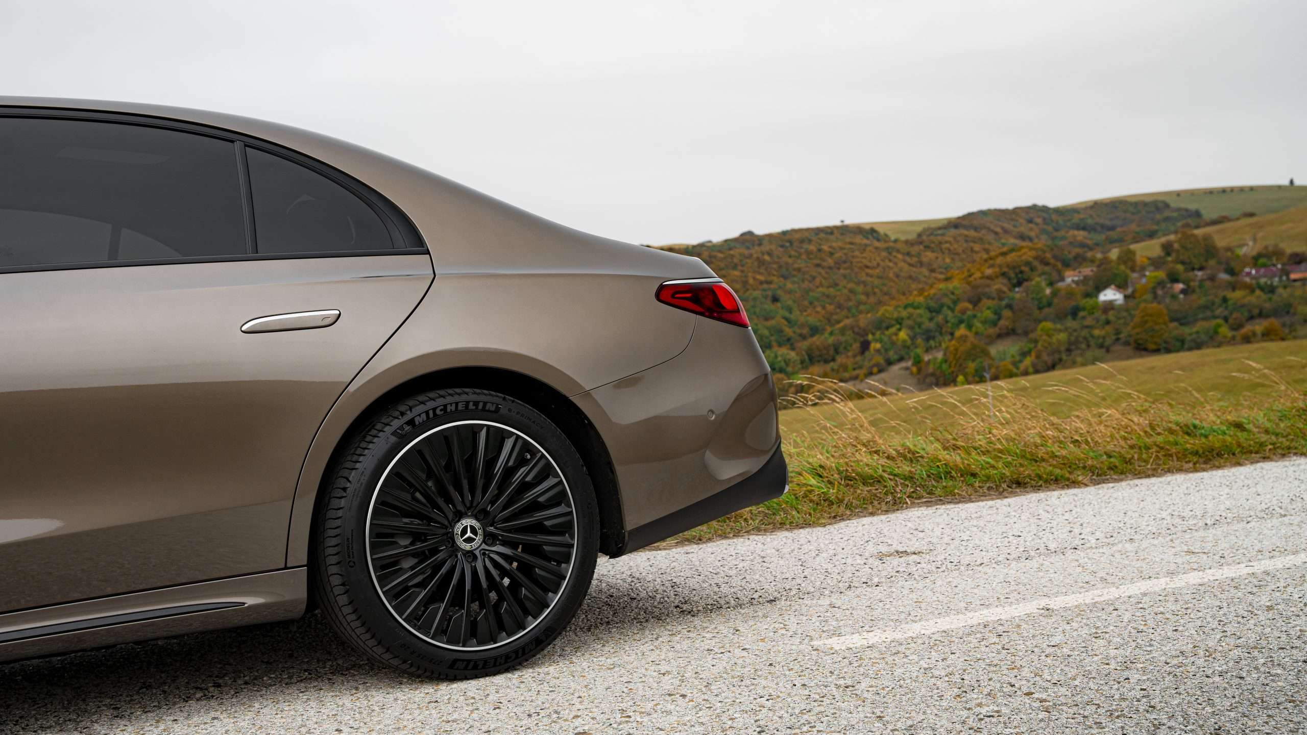 Predné svetlomety majú nový svetelný podpis. Pokiaľ ide o ich technológiu, v základe sa nachádzajú klasické LEDkové svetlá, priplatiť sa však dá za Digital Light s funkciou projekcie aj bez nej. Veľmi vkusným detailom je motív 3D hviezdy v zadných svetlometoch. Uvidíme, či sa tento prvok rozhodne Mercedes uplatniť aj vo svojich ďalších modeloch. Pri nastupovaní si všimnete zapustené kľučky dverí. Je to tiež efektný detail, no priali by sme si, aby v Mercedese zapracovali na ich tichšom zapustení do karosérie po rozbehnutí sa.