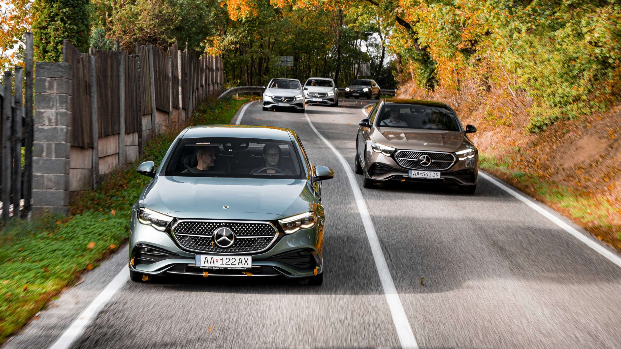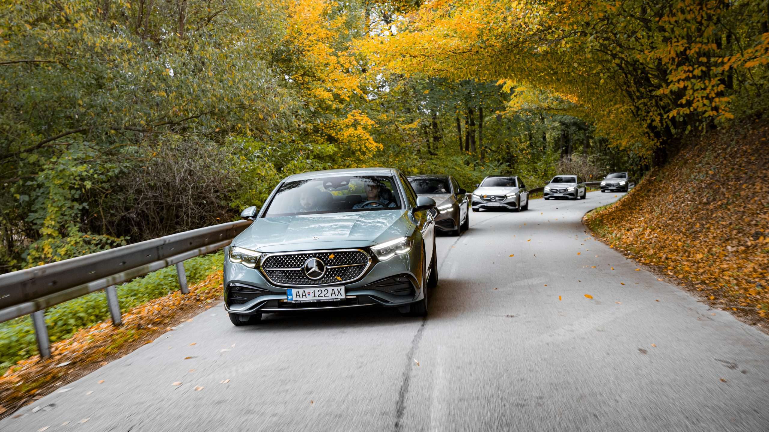 Na Slovensku sa aktuálne predáva celkovo 11 verzií Triedy E. Pokiaľ vás zaujímajú ich technické údaje, prečítajte si náš starší článok. Dlhodobo najpredávanejším modelom je u nás Mercedes-Benz E 220d 4MATIC a práve v tejto populárnej motorizácii sme mohli nové éčko vyskúšať. Ide o naftový 2-litrový štvorvalec s najvyšším výkonom 197 koní a maximálnym krútiacim momentom 440 Nm. Ide o mild-hybrid, takže spaľovací agregát je doplnený o malý elektromotor s výkonom 23 koní a 205 Nm. E 220d ponúka ideálny mix príjemnej dynamiky a rozumnej spotreby nafty. Samozrejme, záleží aj od jazdného štýlu vodiča. Počas takmer 380-kilometrovej trasy sme z vozidiel vyčítali priemernú spotrebu od 5,5 do 6,8 litra nafty na 100 kilometrov. Z 0 na 100 km/h zrýchli za 7,8 sekundy a dosiahne najvyššiu rýchlosť 234 km/h. Dojazd pritom môže pokojne prekonať hranicu 1000 km.