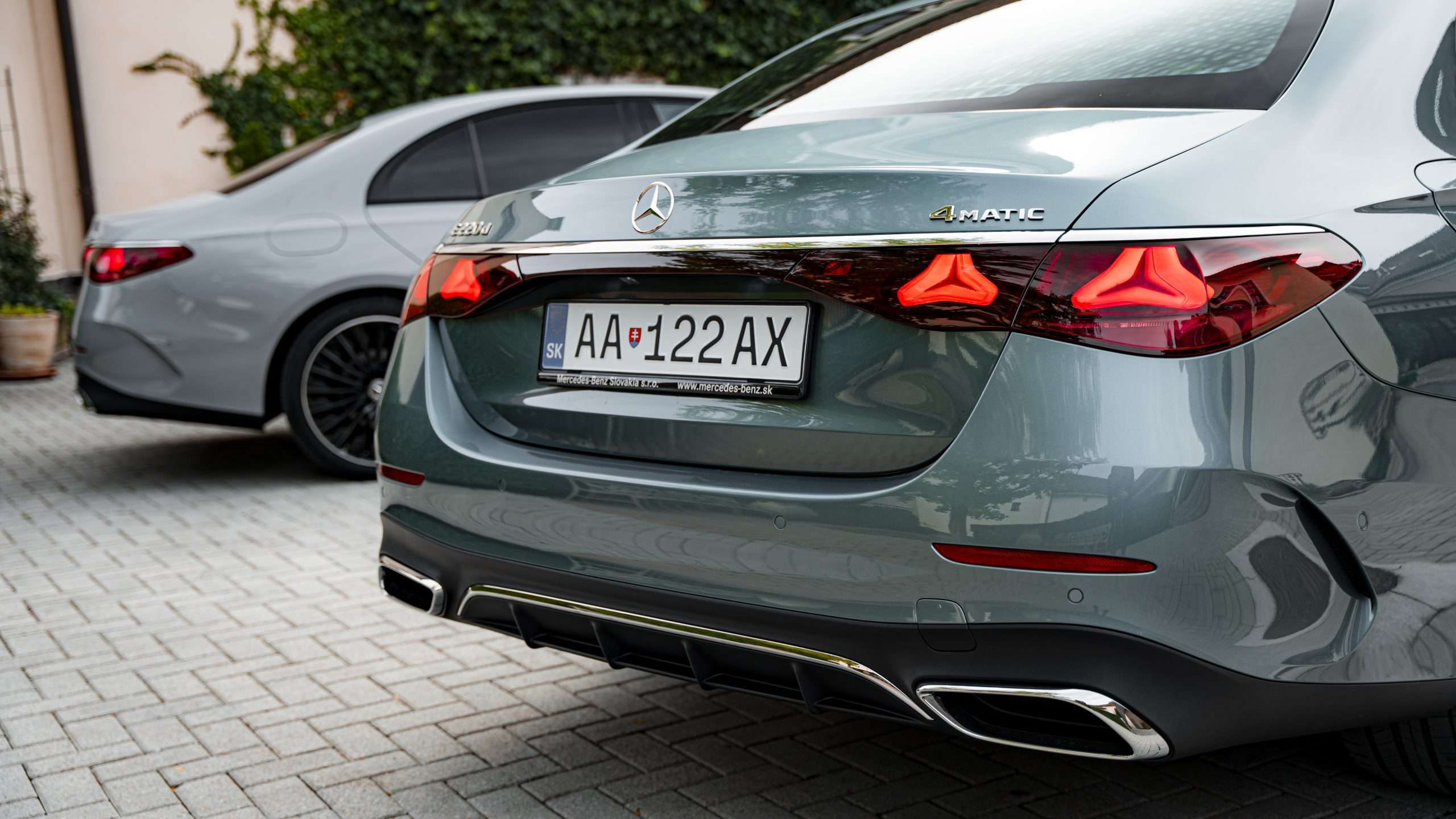 Čo sa týka prednej a zadnej časti, tu už má Trieda E viacero charakteristických prvkov, ktoré ju odlišujú od zvyšku produktového portfólia nemeckej značky. Tak v prvom rade, rám čelnej masky môže byť osvetlený. Ide teda o voliteľnú výbavu a je len na vás, či chcete, aby sa vaše auto prezentovalo týmto svetelným doplnkom alebo nie. Ani jedno z piatich testovacích vozidiel osvetlenou maskou vybavené nebolo, takže vám zatiaľ nevieme povedať, ako tento prvok pôsobí naživo.