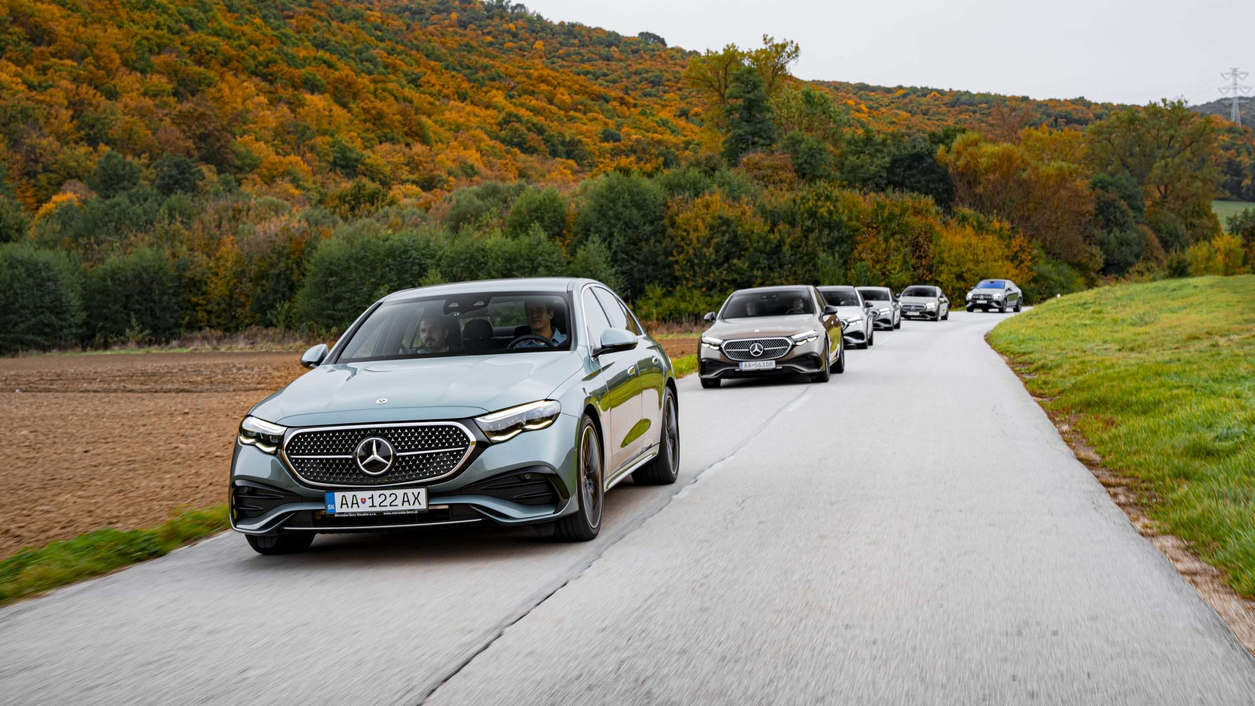 Na Slovensku sa aktuálne predáva celkovo 11 verzií Triedy E. Pokiaľ vás zaujímajú ich technické údaje, prečítajte si náš starší článok. Dlhodobo najpredávanejším modelom je u nás Mercedes-Benz E 220d 4MATIC a práve v tejto populárnej motorizácii sme mohli nové éčko vyskúšať. Ide o naftový 2-litrový štvorvalec s najvyšším výkonom 197 koní a maximálnym krútiacim momentom 440 Nm. Ide o mild-hybrid, takže spaľovací agregát je doplnený o malý elektromotor s výkonom 23 koní a 205 Nm. E 220d ponúka ideálny mix príjemnej dynamiky a rozumnej spotreby nafty. Samozrejme, záleží aj od jazdného štýlu vodiča. Počas takmer 380-kilometrovej trasy sme z vozidiel vyčítali priemernú spotrebu od 5,5 do 6,8 litra nafty na 100 kilometrov. Z 0 na 100 km/h zrýchli za 7,8 sekundy a dosiahne najvyššiu rýchlosť 234 km/h. Dojazd pritom môže pokojne prekonať hranicu 1000 km.