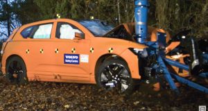 Brutálny crashtest: Volvo EX60 v 60 km/h čelne narazilo do sĺpu