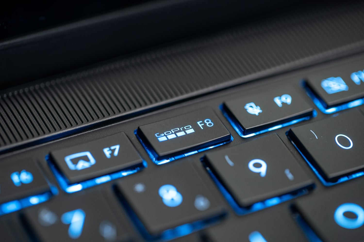 Branding zo spolupráce s GoPro nijako nekričí do sveta, kto však vie, o čo ide, niekoľko detailov si všimne. Tým najvýraznejším je charakteristické modré podsvietenie klávesnice, ktoré v úplnej tme nemusí byť úplne najpríjemnejšie, rýchlo si však zvyknete. Tým druhým je samostatné GoPro tlačidlo, ktoré spúšťa špeciálny prehrávač videí z tejto kamery. V porovnaní s bežným prehrávačom zvládne aj otáčanie 360-stupňových záberov alebo orez videí natočených v režime superstabilizácie HyperSmooth Pro.