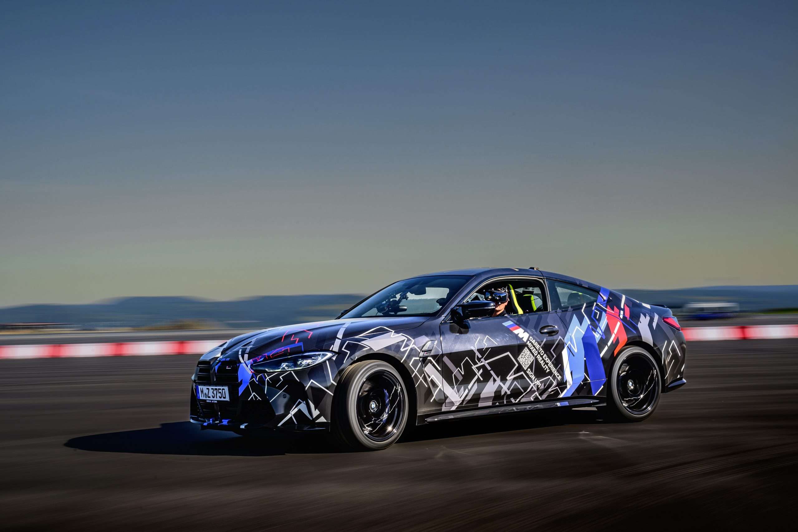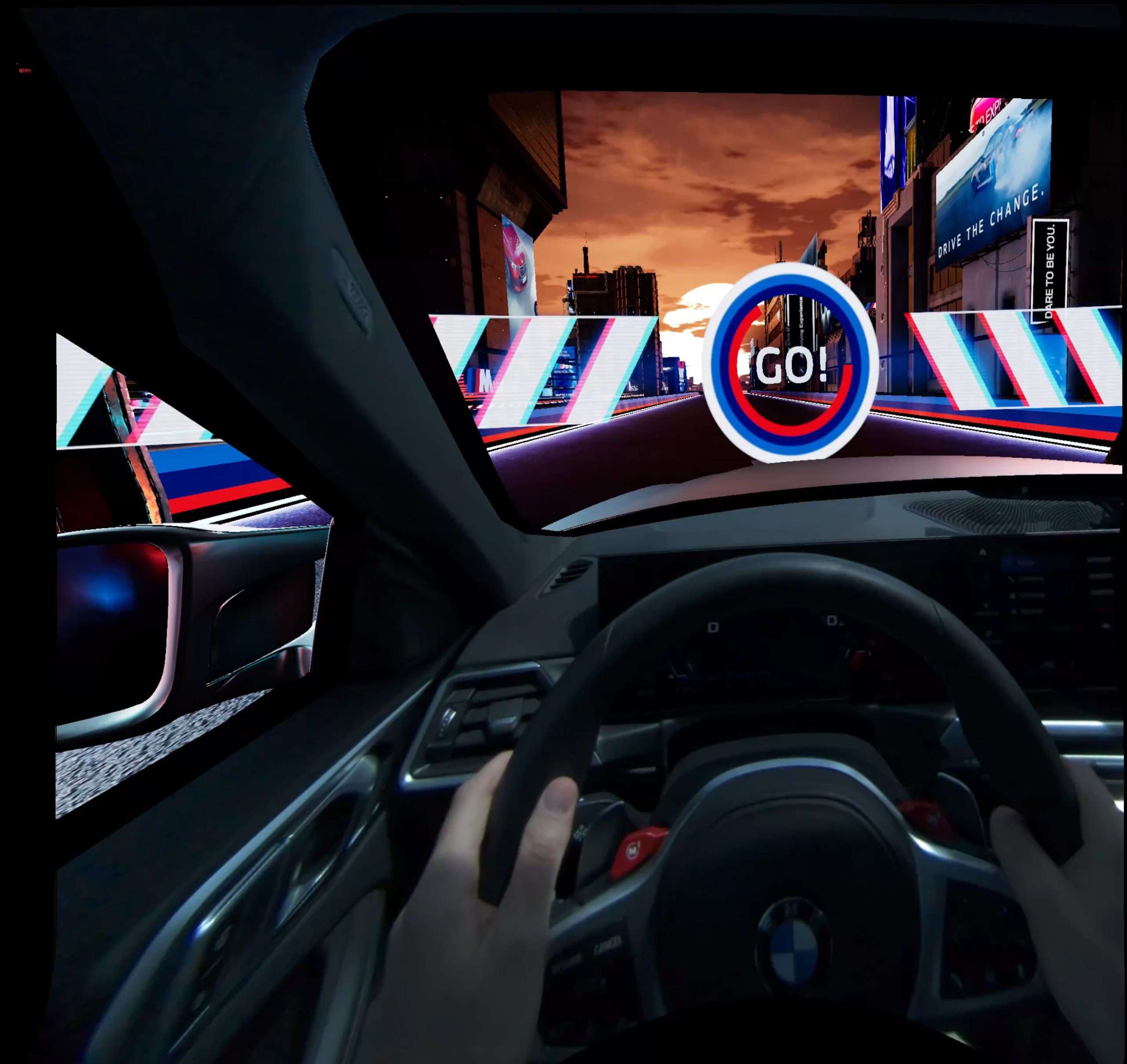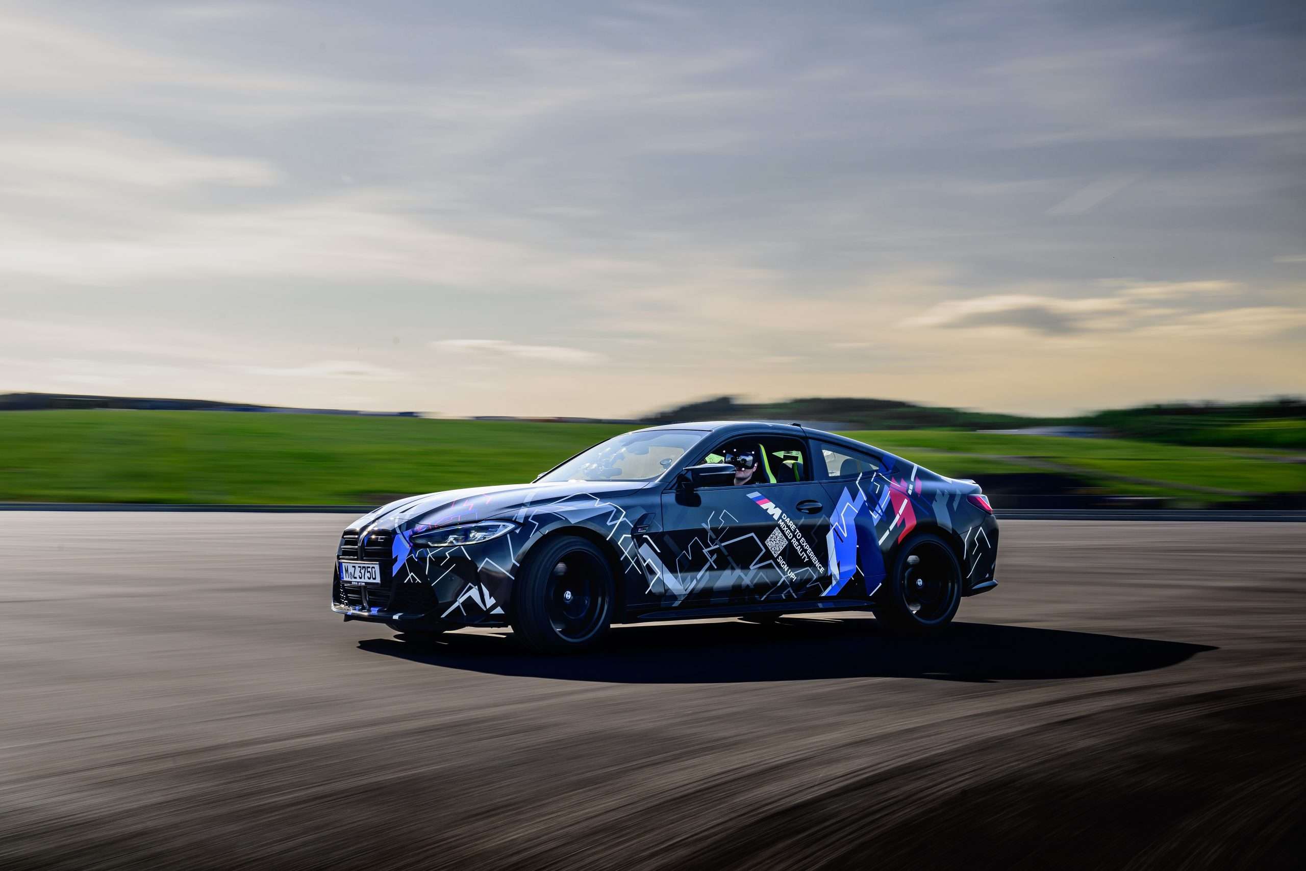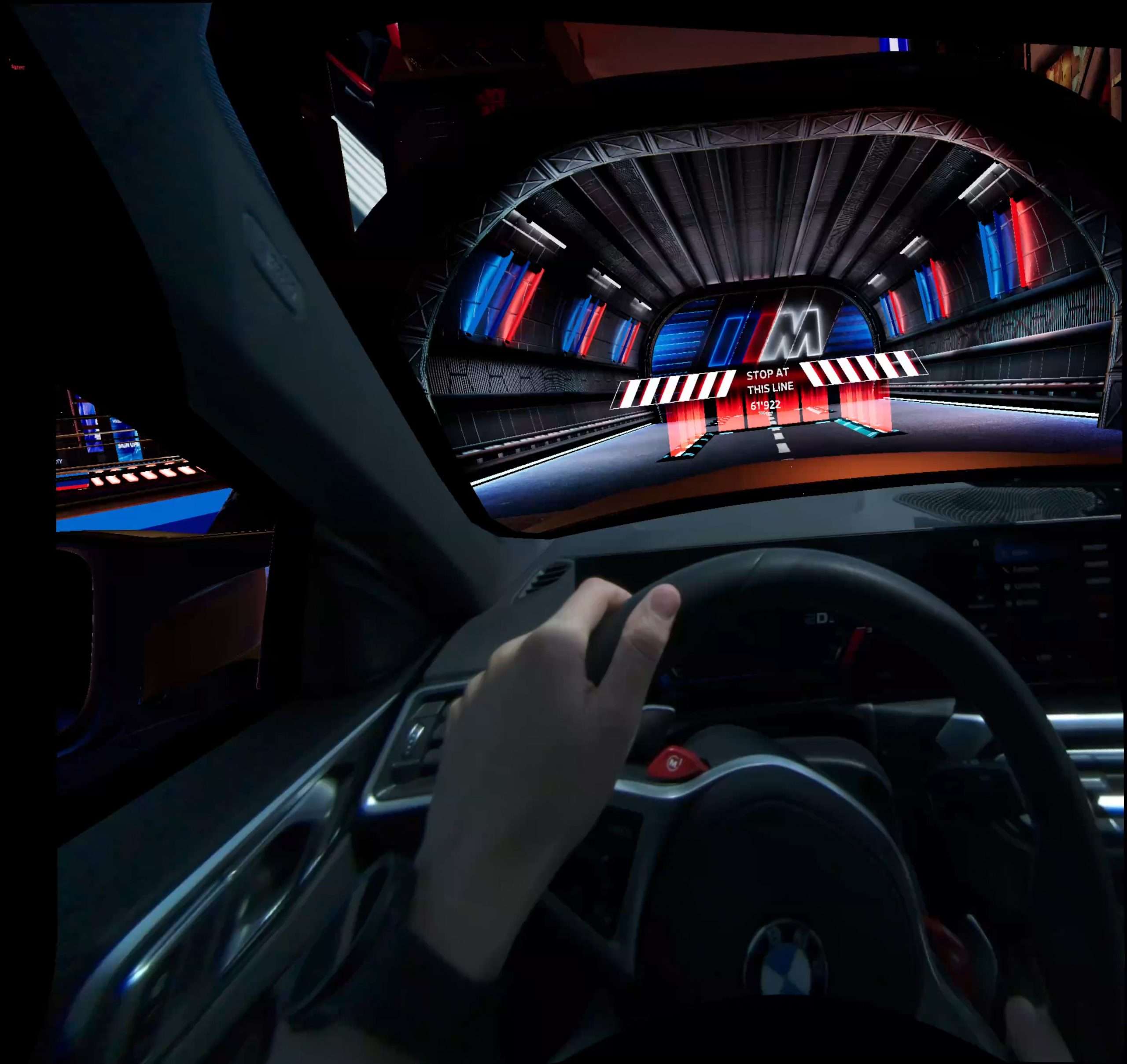 Zmiešaná realita spája dva rôzne svety, reálny a digitálny, do jedného zábavného celku. V prvom rade, aby ste niečo podobné mohli začať, potrebujete na to zodpovedajúcu technológiu. Tú ukrýva auto, v tomto prípade BMW M4 Competition s výkonom 510 koní, no svojich útrobách. Prostredníctvom VR headsetu, ktorý stojí asi 8.000 €, prevedie vaše vnímanie do virtuálneho sveta. V našom prípade to bol okruh s množstvami zákrut ponorený do tmy a osvetlený neónovými nápismi. V skutočnosti sa však sedel za volantom BMW M4 pripútaný štvorbodovým bezpečnostným pásom a pod pravou nohou som ovládal nálož 510 koní. Kontrolované prostredie sa v tomto prípade myslí jeden z obrovských asfaltových polygónov pri Sokolove, kde BMW nedávno otvorilo svoje najväčšie testovacie centrum na svete.