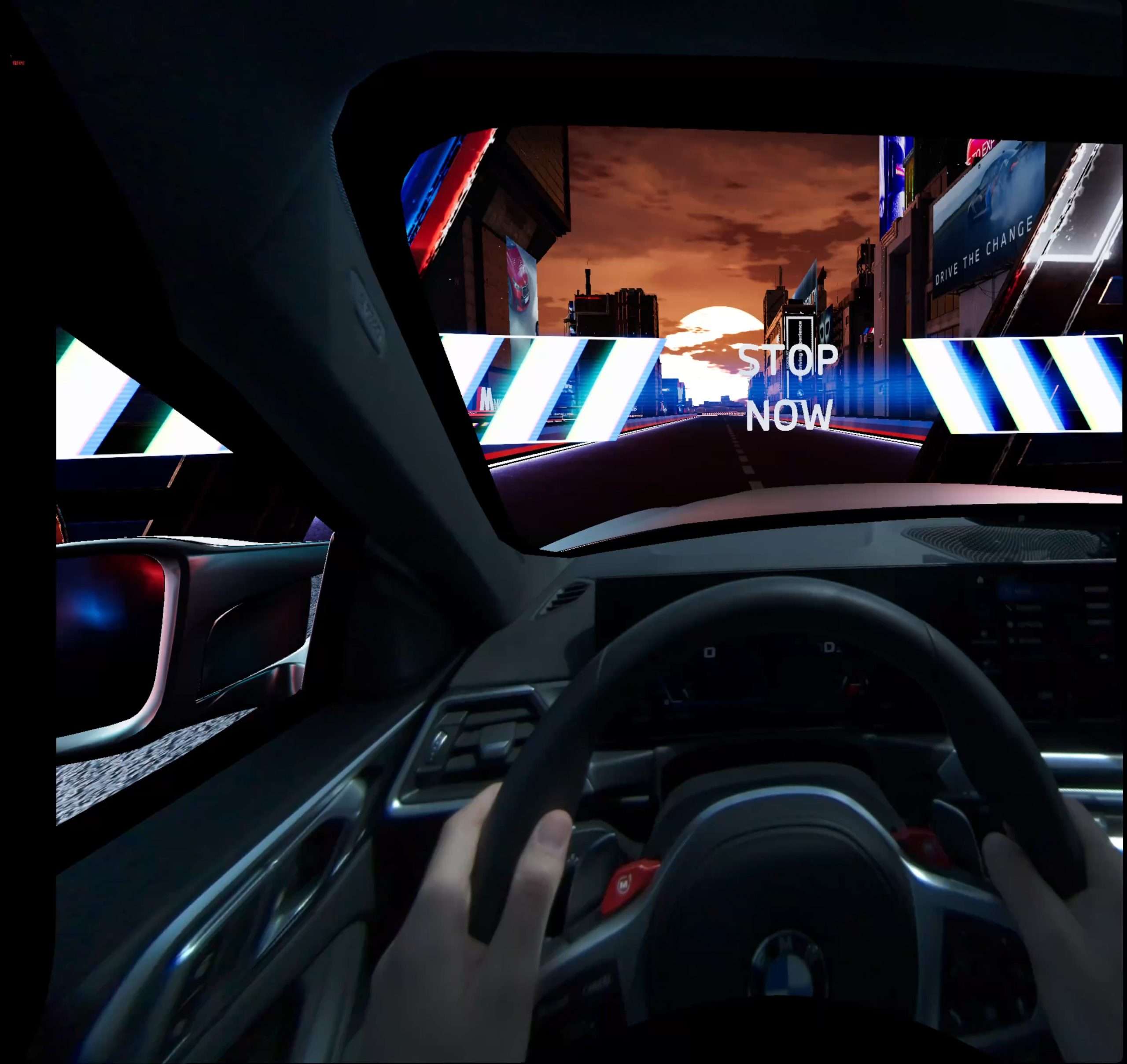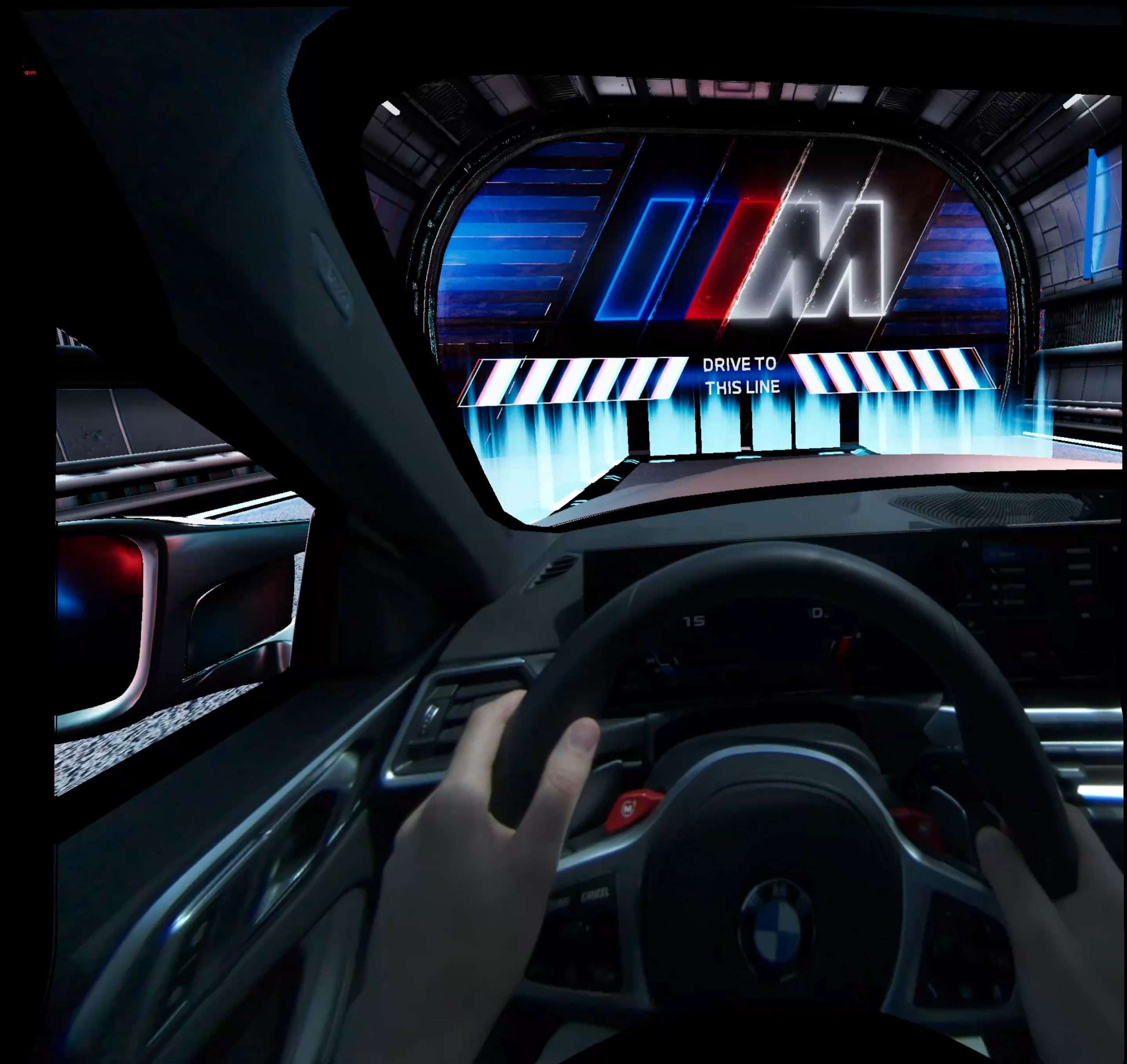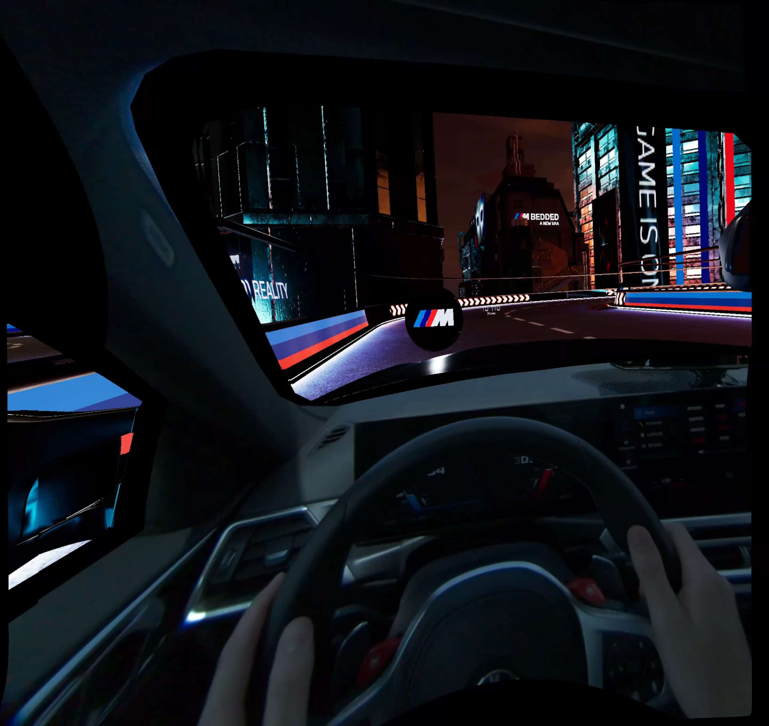 Zmiešaná realita spája dva rôzne svety, reálny a digitálny, do jedného zábavného celku. V prvom rade, aby ste niečo podobné mohli začať, potrebujete na to zodpovedajúcu technológiu. Tú ukrýva auto, v tomto prípade BMW M4 Competition s výkonom 510 koní, no svojich útrobách. Prostredníctvom VR headsetu, ktorý stojí asi 8.000 €, prevedie vaše vnímanie do virtuálneho sveta. V našom prípade to bol okruh s množstvami zákrut ponorený do tmy a osvetlený neónovými nápismi. V skutočnosti sa však sedel za volantom BMW M4 pripútaný štvorbodovým bezpečnostným pásom a pod pravou nohou som ovládal nálož 510 koní. Kontrolované prostredie sa v tomto prípade myslí jeden z obrovských asfaltových polygónov pri Sokolove, kde BMW nedávno otvorilo svoje najväčšie testovacie centrum na svete.