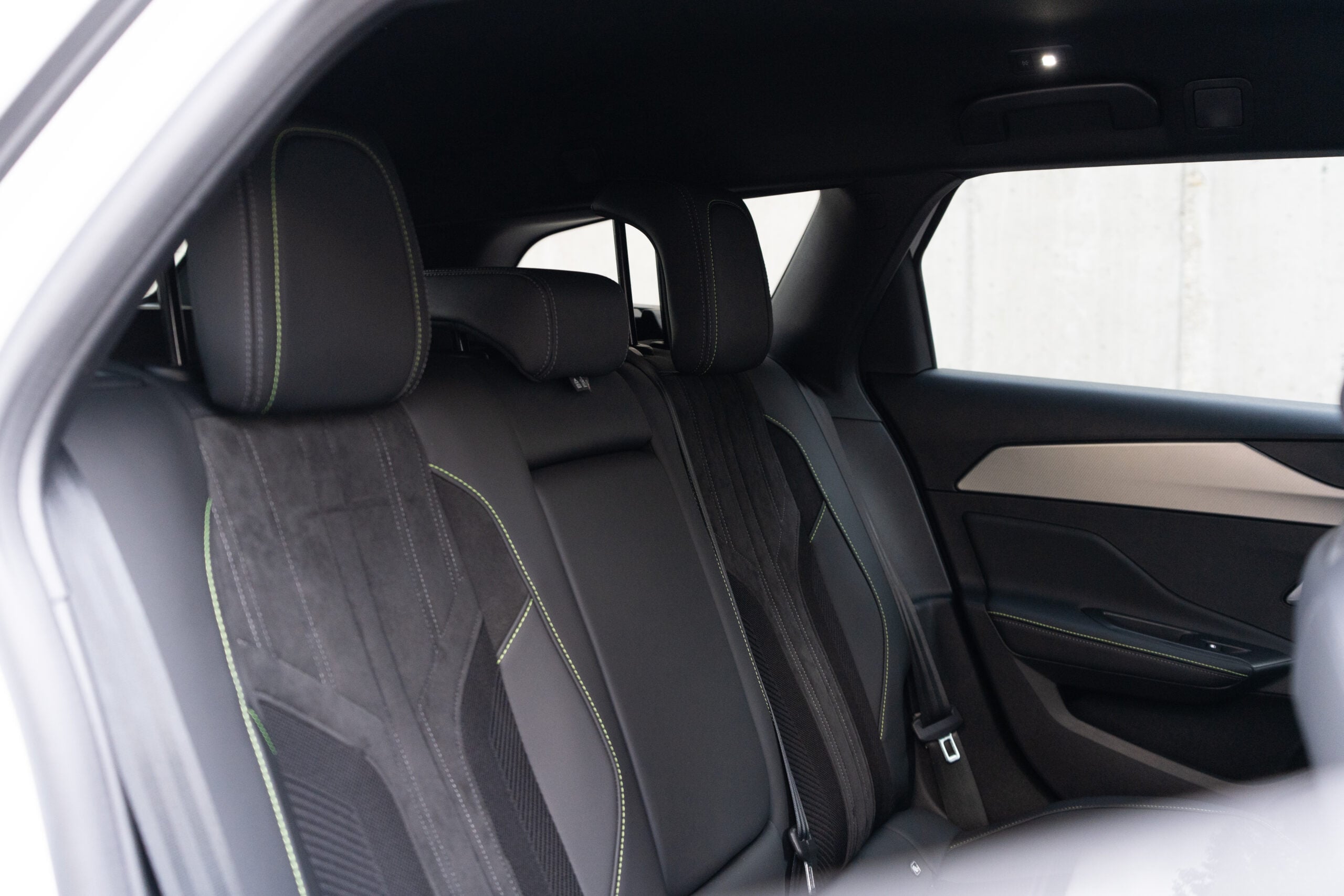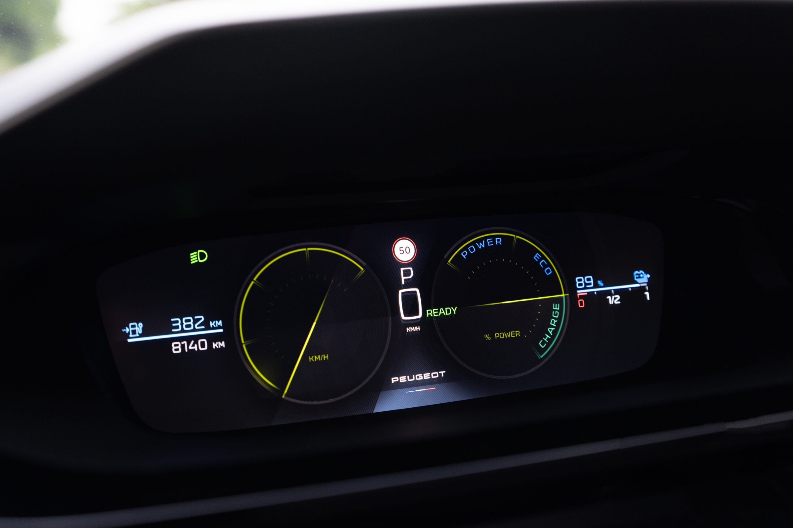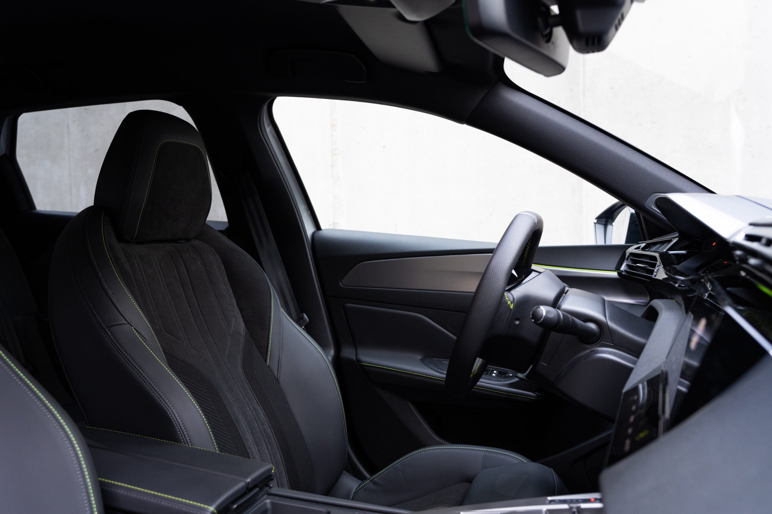K štandardnej výbave patrí trojfázová palubná nabíjačka s výkonom 11 kW. Nabíjacia zásuvka umožňuje všetky režimy nabíjania. Prostredníctvom 100 kW verejnej nabíjacej stanice sa vozidlo nabije z 20 na 80 % za menej ako 25 minút. Takže ani nabíjací výkon nie je ohromujúci, no vzhľadom na kapacitu batérie dostačujúci. V interiéri je to klasický Peugeot s moderným spracovaním, 3D displejom za volantom, pohodlným skôr štvormiestnym usporiadaním, v našom prípade športovými sedadlami (ktoré veľmi nekorešpondujú so zameraním auta) a celkovo bohatou výbavou.