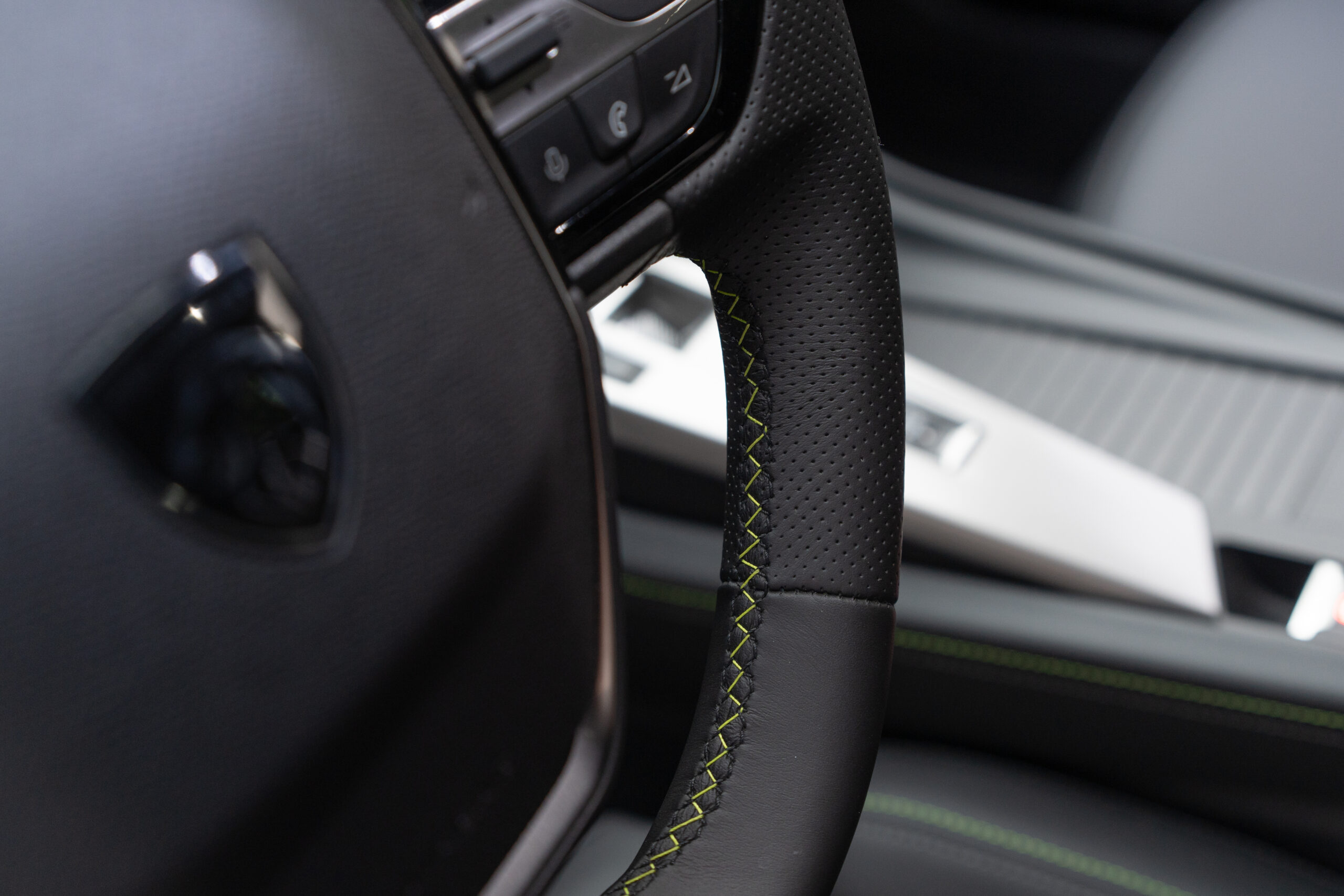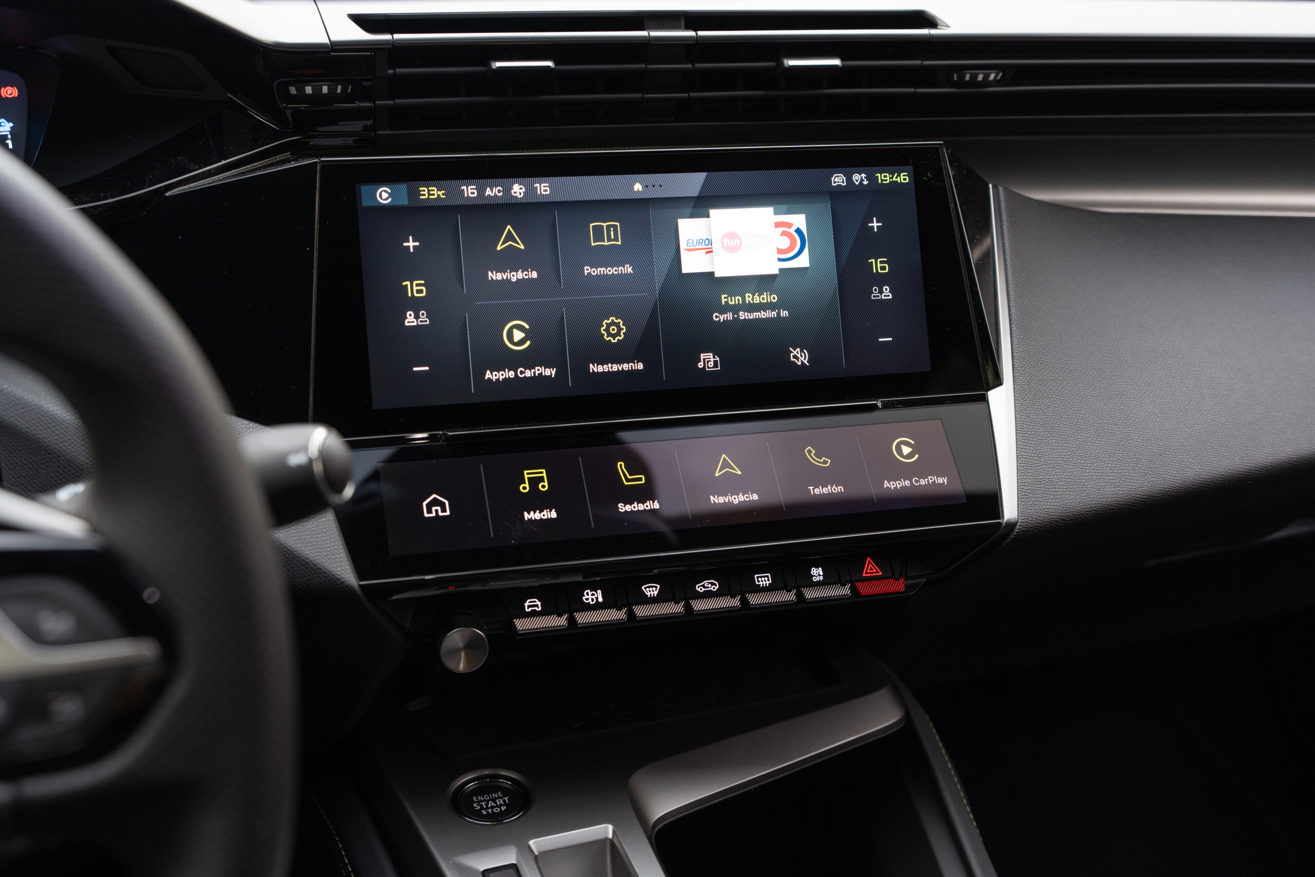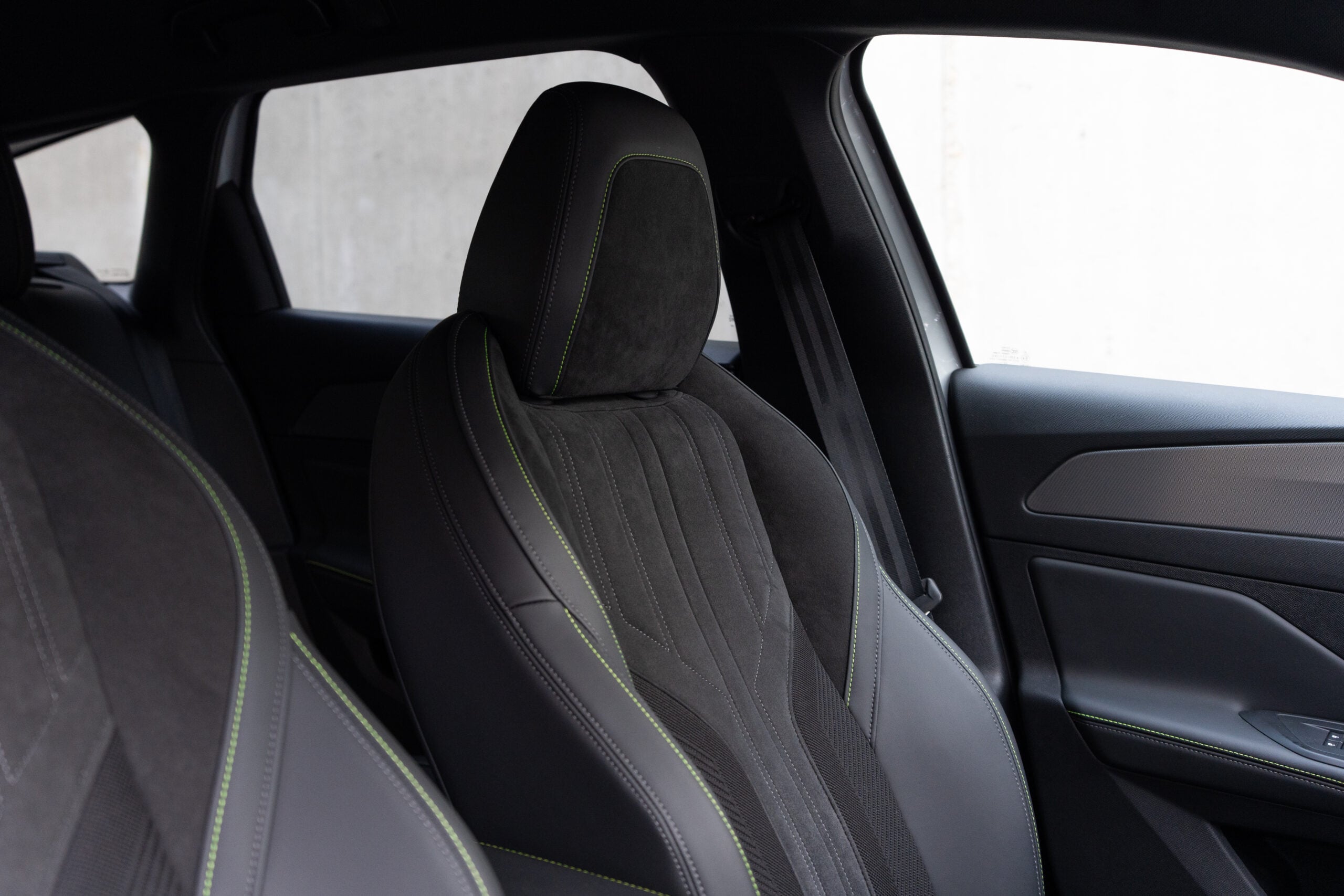 K štandardnej výbave patrí trojfázová palubná nabíjačka s výkonom 11 kW. Nabíjacia zásuvka umožňuje všetky režimy nabíjania. Prostredníctvom 100 kW verejnej nabíjacej stanice sa vozidlo nabije z 20 na 80 % za menej ako 25 minút. Takže ani nabíjací výkon nie je ohromujúci, no vzhľadom na kapacitu batérie dostačujúci. V interiéri je to klasický Peugeot s moderným spracovaním, 3D displejom za volantom, pohodlným skôr štvormiestnym usporiadaním, v našom prípade športovými sedadlami (ktoré veľmi nekorešpondujú so zameraním auta) a celkovo bohatou výbavou.